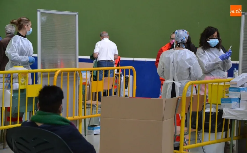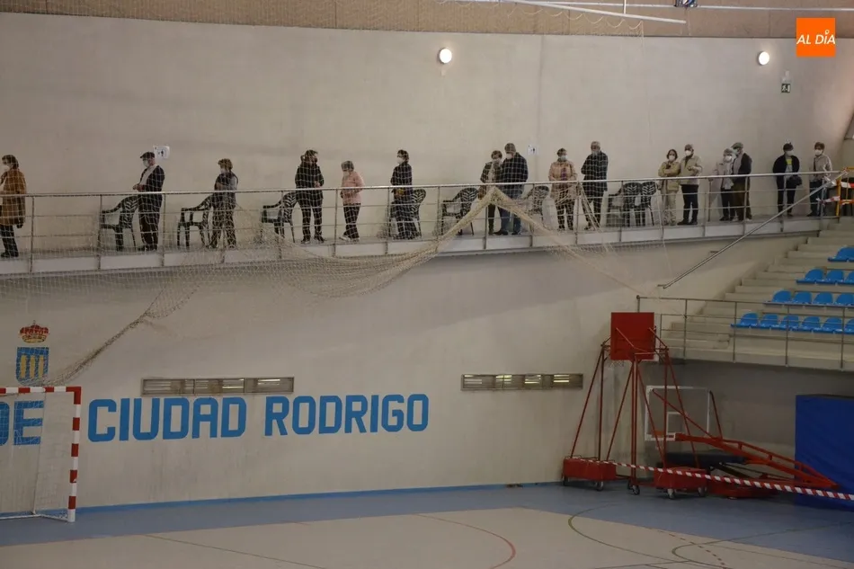 El Pabellón Eladio Jiménez de Ciudad Rodrigo está acogiendo a lo largo de este martes 20 de abril una nueva jornada de vacunación masiva contra el coronavirus, siendo ésta la mayor jornada de vacunación de las desarrolladas hasta el momento en la Zona Básica de Salud de Ciudad Rodrigo, que hay que recordar que está integrada por las localidades de La Atalaya, El Bodón, Carpio de Azaba, Castillejo de Martín Viejo, Ciudad Rodrigo, La Encina, Monsagro, Pastores, Saelices el Chico, Sancti-Spíritus, Serradilla del Arroyo, Serradilla del Llano, Tenebrón y Zamarra.