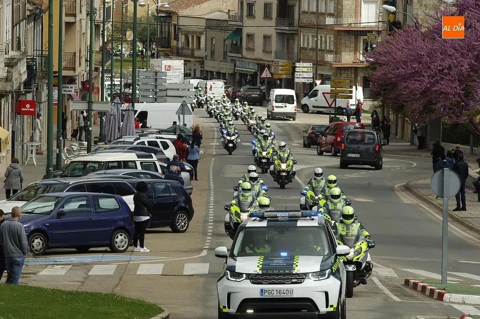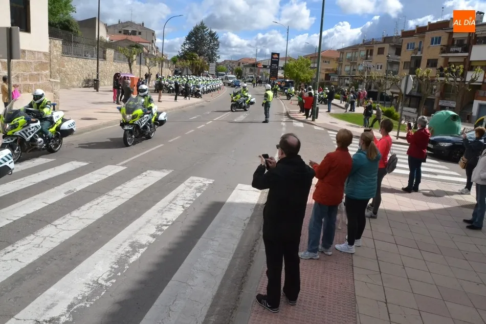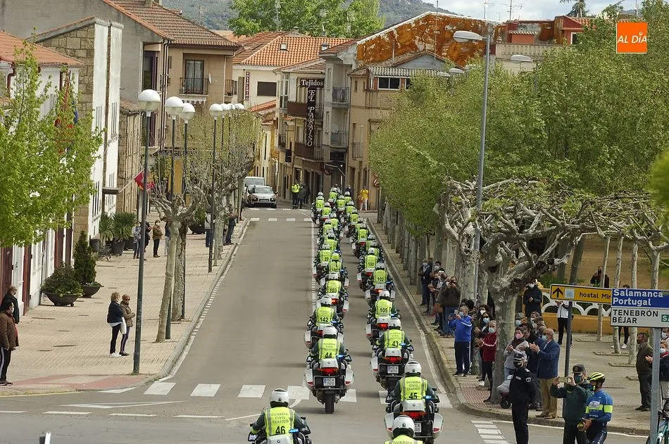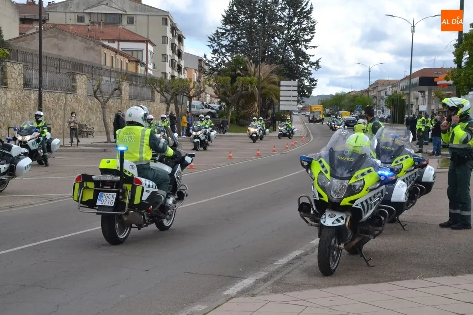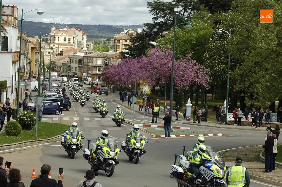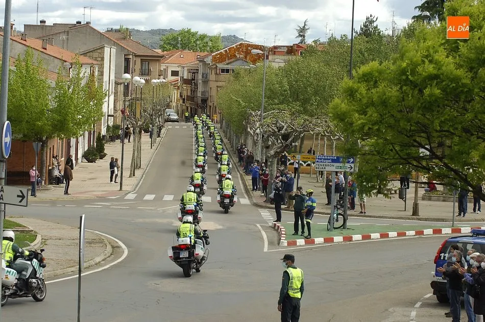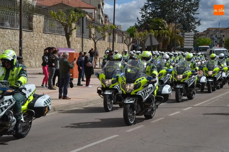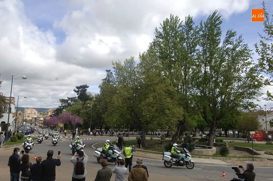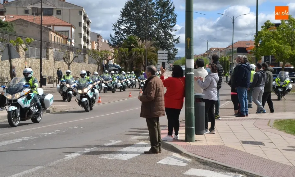 Estos motoristas procedentes de Mérida, junto a otros numerosos compañeros de Castilla y León, se fueron concentrando desde las 11.00 horas en la gasolinera de Repsol en la Avenida de Salamanca, donde se puso en marcha una ruta motera por las calles mirobrigenses en dirección al IES Fray Diego Tadeo. Tanto en la zona de la salida (que tuvo que retrasarse media hora hasta que estuvieron listos todos los participantes) como a lo largo del trayecto, y en la llegada al IES, numerosos mirobrigenses contemplaron la caravana motera (tanto a pie de calle como desde las viviendas), arrancándose muchos de ellos en aplausos al paso de los agentes.
