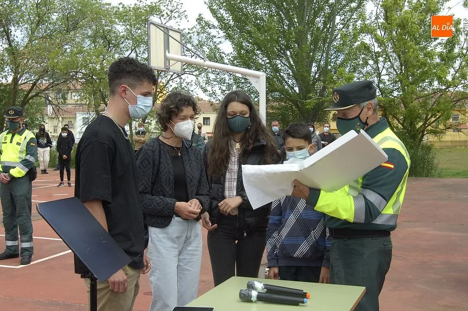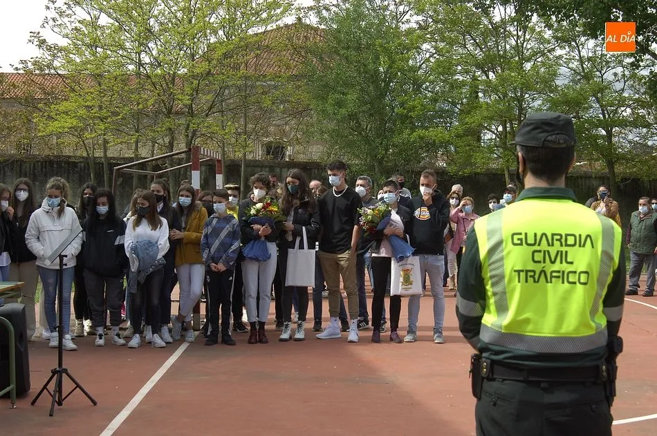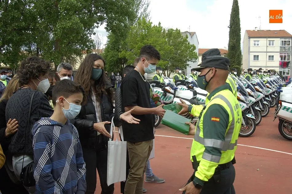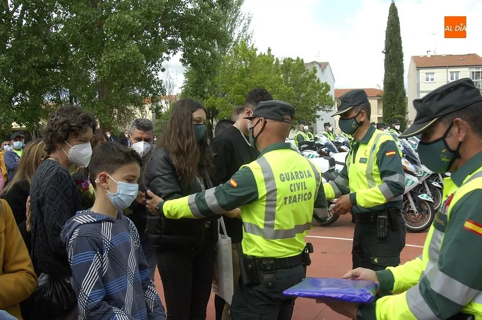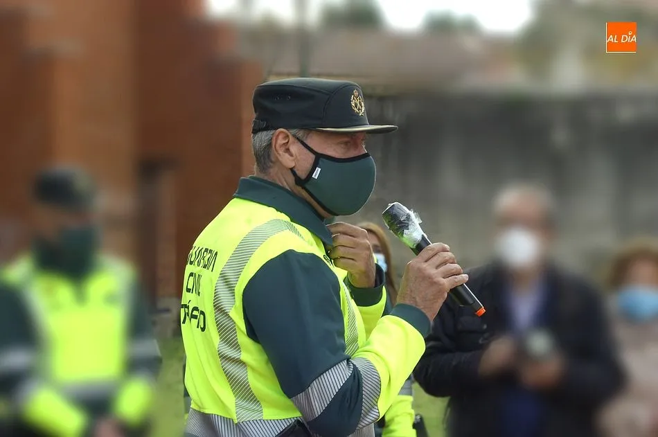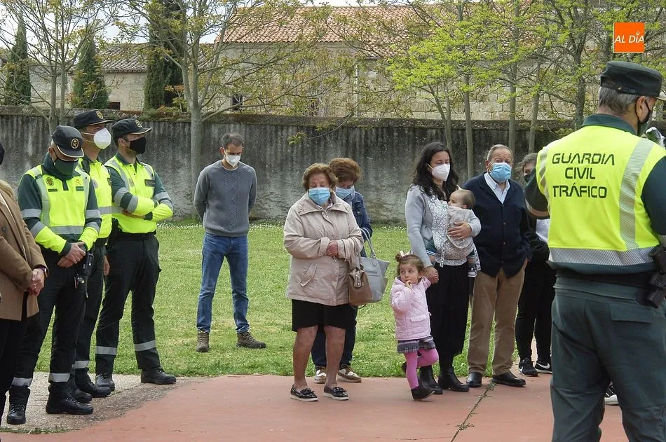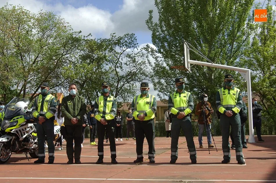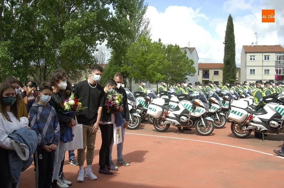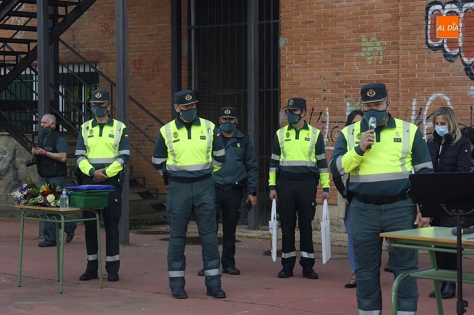 Este nuevo homenaje fue liderado por la propia Guardia Civil, que quiso transmitir especialmente a las familias que, ?aunque nada de lo que digamos puede atenuar el dolor de la pérdida?, en palabras de Francisco Iturralde, Jefe del Sector de Tráfico en Castilla y León, ?no estáis solos, la familia de la Guardia Civil siempre os va a acompañar?, como recalcó durante el acto central de homenaje en el patio del IES Fray Diego Tadeo Tomás García Gazapo, Coronel-Director de la Escuela de Tráfico de la Benemérita en Mérida.