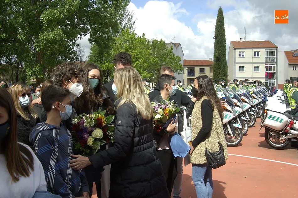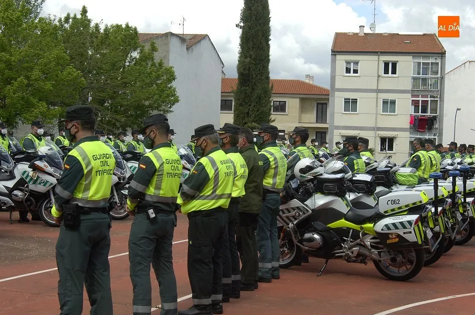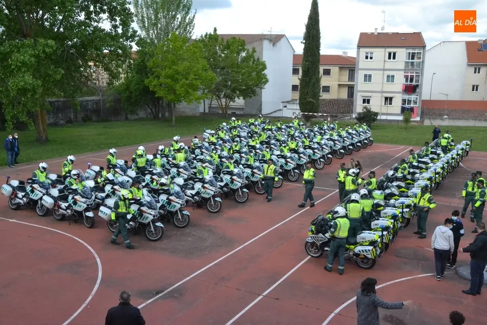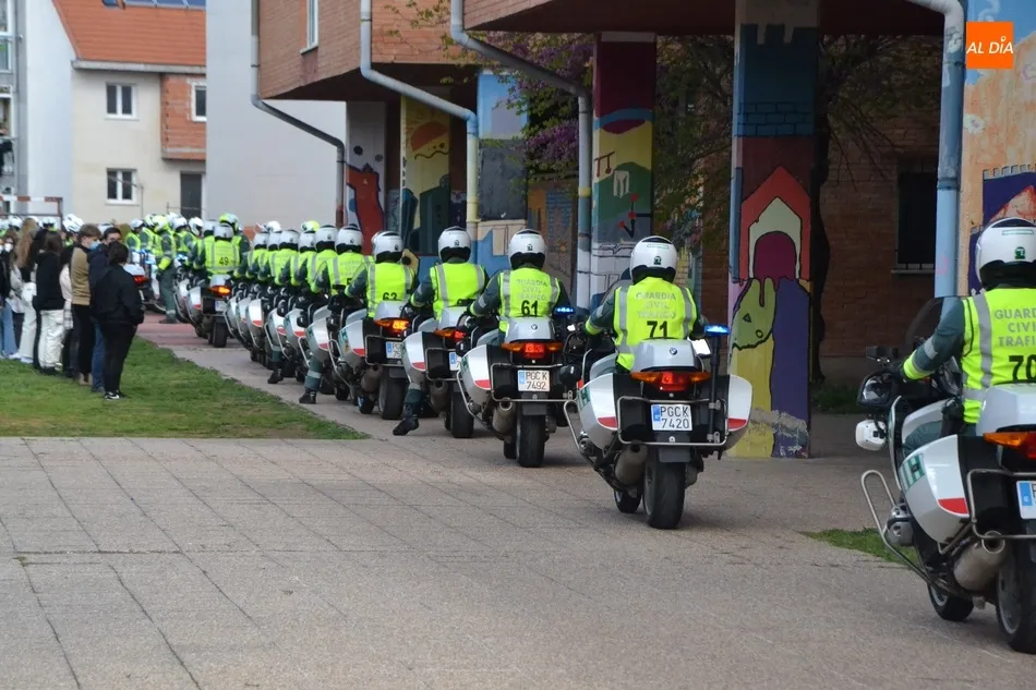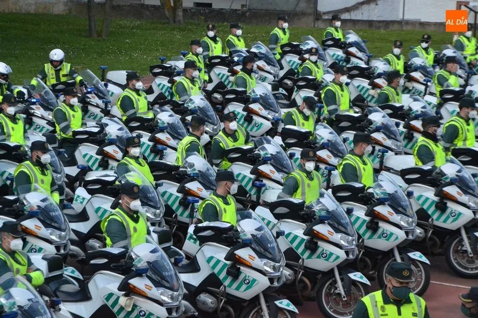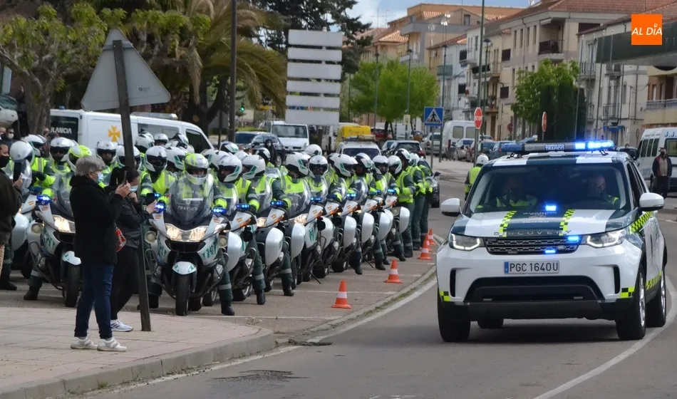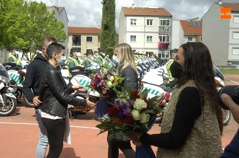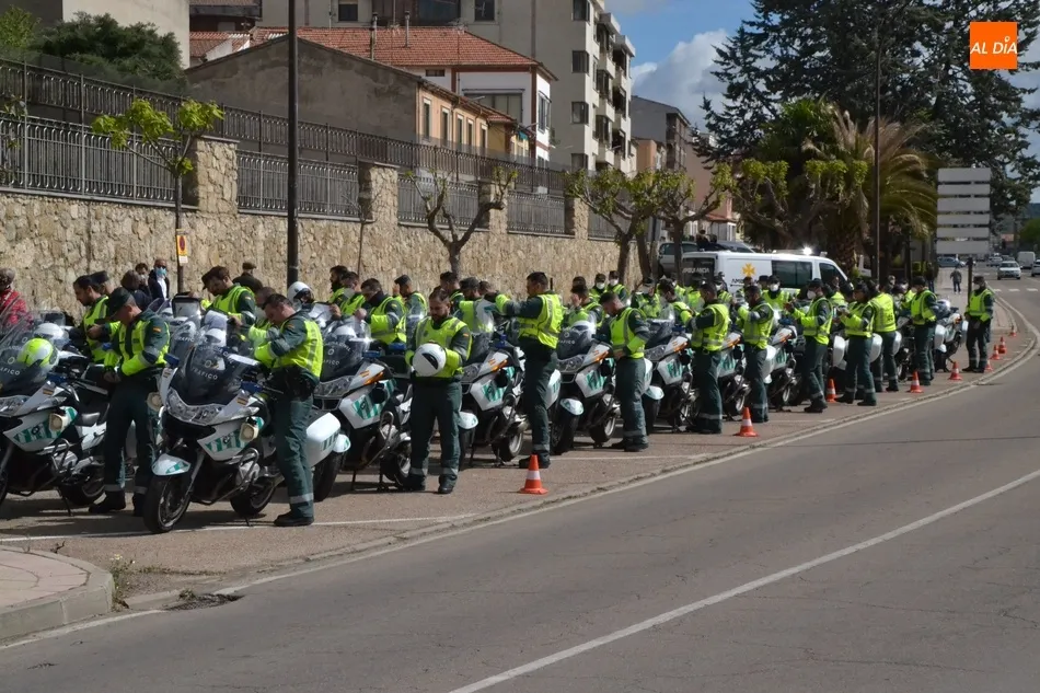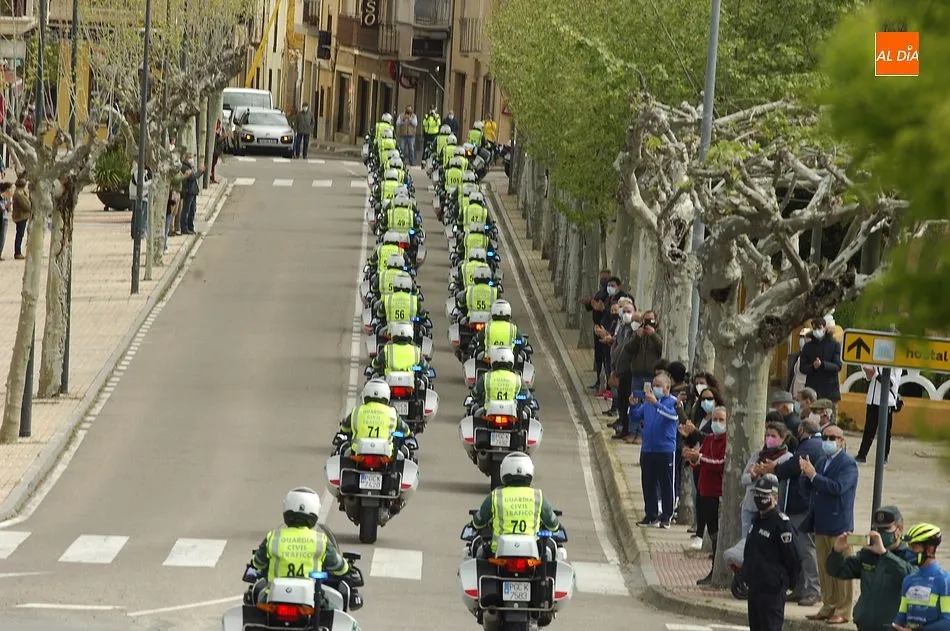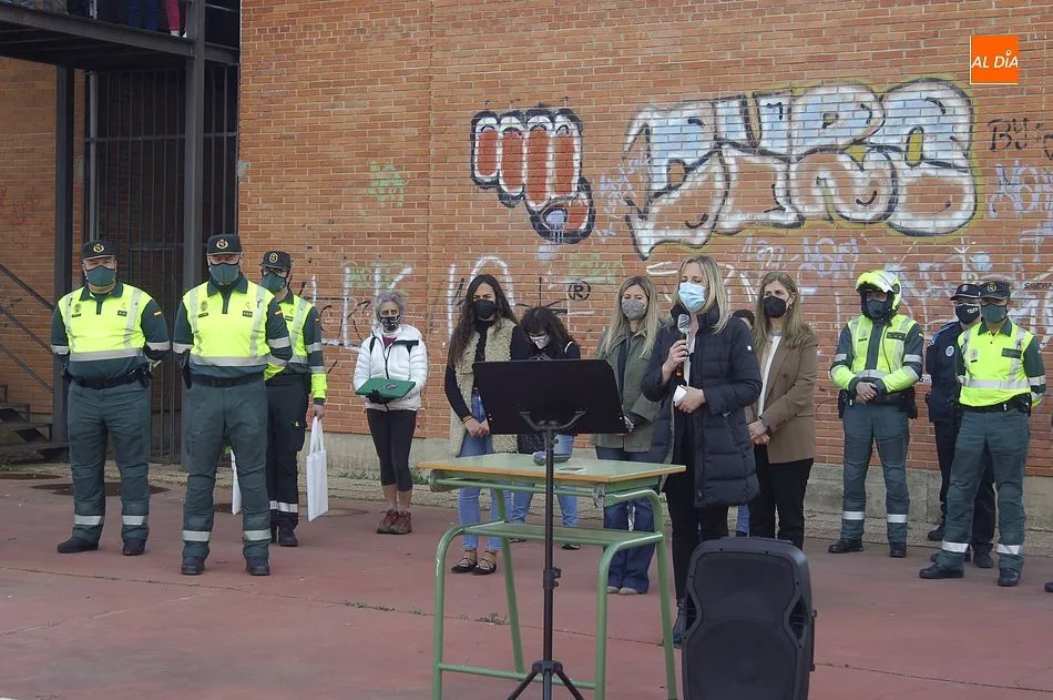 Este nuevo homenaje fue liderado por la propia Guardia Civil, que quiso transmitir especialmente a las familias que, ?aunque nada de lo que digamos puede atenuar el dolor de la pérdida?, en palabras de Francisco Iturralde, Jefe del Sector de Tráfico en Castilla y León, ?no estáis solos, la familia de la Guardia Civil siempre os va a acompañar?, como recalcó durante el acto central de homenaje en el patio del IES Fray Diego Tadeo Tomás García Gazapo, Coronel-Director de la Escuela de Tráfico de la Benemérita en Mérida.