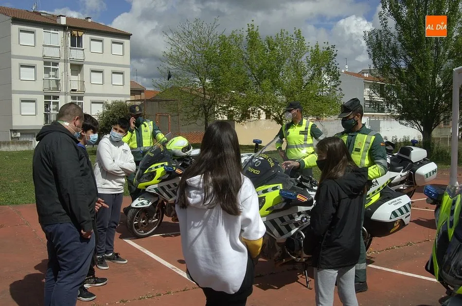 Finalizado el acto en sí, se dio la oportunidad a los alumnos del IES Fray Diego que estuvieron presentes en el homenaje (únicamente pudieron estar una parte) que viesen de cerca las monturas de los motoristas, antes de que estos abandonasen el IES, de nuevo entre aplausos y vítores a la Guardia Civil por parte de los congregados a las puertas. En su despedida del lugar, también fueron contemplados de cerca por alumnos del Colegio Miróbriga que se encontraban en el patio en ese momento.