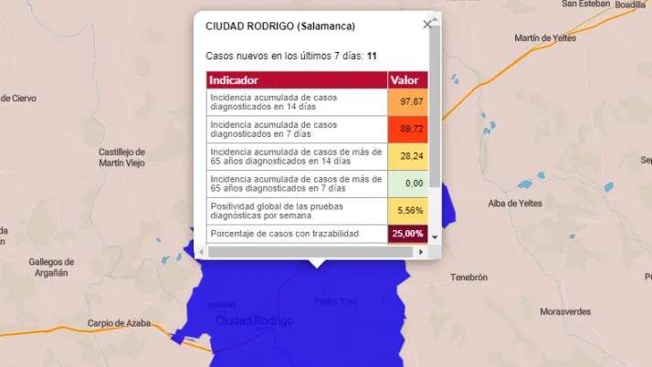 Como única noticia favorable para la localidad de Ciudad Rodrigo, supera la semana de antigüedad el último positivo detectado entre los mayores de 65 años. Además, su Zona Básica suma 2 personas enfermas y 2 casos activos, mientras que las zonas de La Fuente de San Esteban y Tamames suman el mismo número de personas enfermas y casos activos que de nuevos positivos por PCR.
