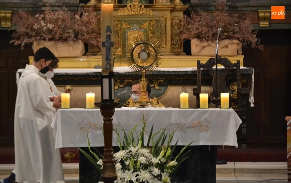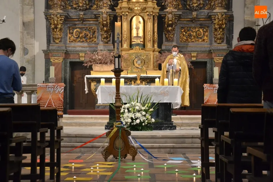 Este año, la iniciativa -en la que estuvo expuesto el Santísimo Sacramento de forma permanente en el altar- tuvo como lema ¿Para quién soy yo?. Para rematar la intensa jornada (por la que fueron pasando distintos grupos), la misma Capilla Mayor fue escenario justo al cumplirse las 12 horas de una Vigilia de oración vocacional que fue presidida por el rector del Seminario Diocesano, Anselmo Matilla. La Vigilia, que tuvo animación musical, contó con la asistencia de los alumnos del Seminario, así como de numerosos fieles, que prácticamente llenaron el templo teniendo en cuenta cuál es la limitación actual de aforo.