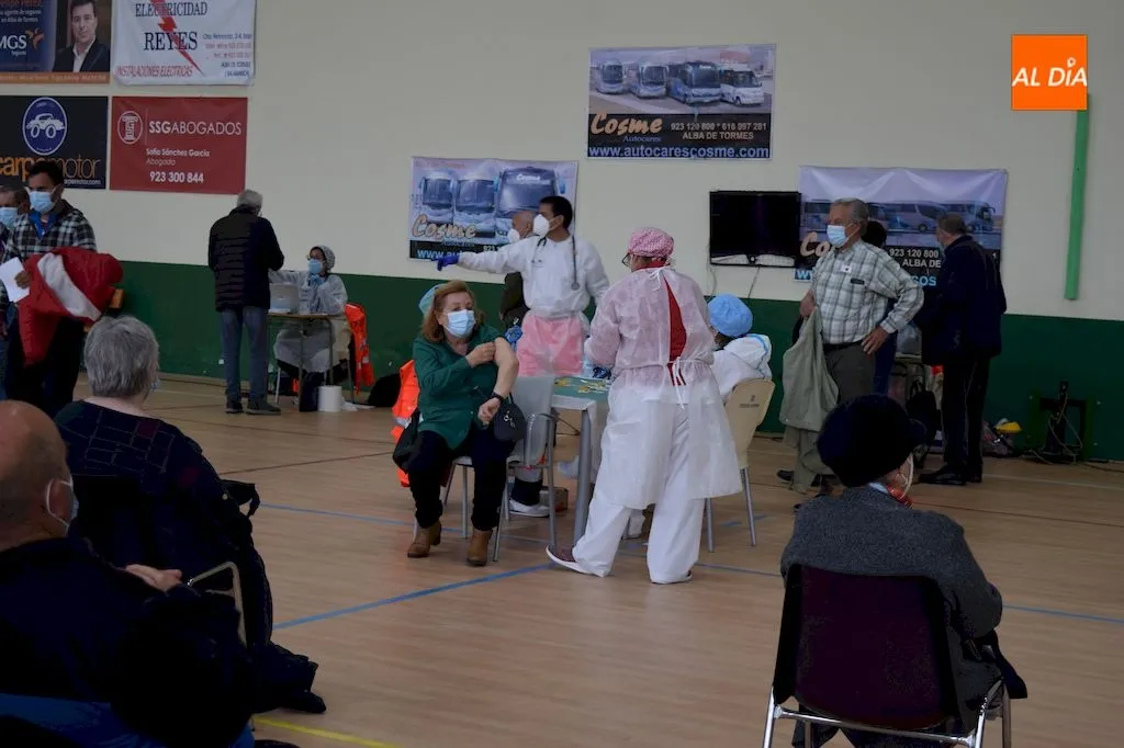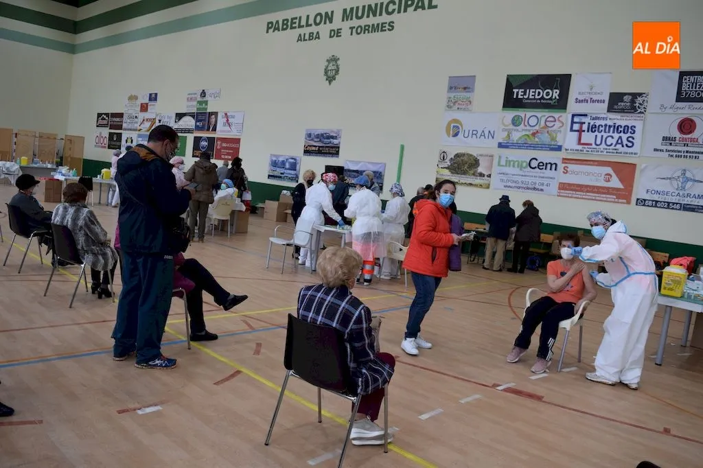 El pabellón municipal de Alba de Tormes ha vuelto a acoger este miércoles una nueva jornada de vacunaciones masivas. En esta ocasión, se ha vacunado 1.218 personas nacidas entre 1942 y 1951 pertenecientes a la zona básica de salud de Alba de Tormes.