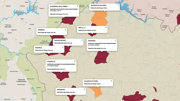 Además, sobre la valoración del índice de riesgo en municipios de menos de 1.000 habitantes, hay que precisar que con un solo positivo el resultado siempre es de Muy alto. Esto es debido a que en la fórmula para la obtención de estos valores se aplica sobre una población de 100.000 habitantes.