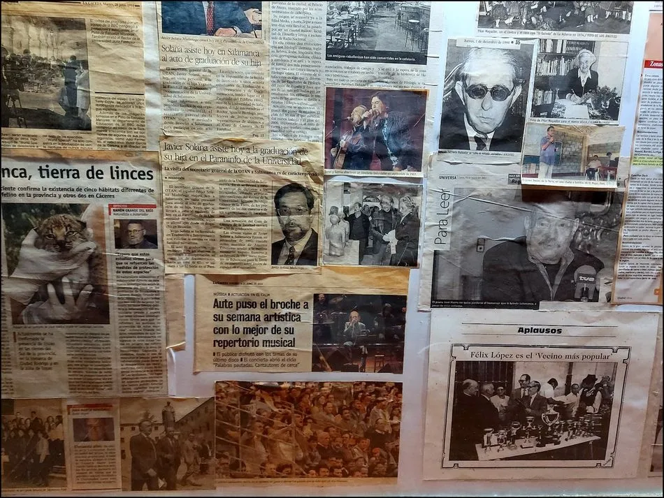 Cuántas tertulias en los asientos de madera y cuero curvados por un tiempo que ha dejado su huella en la memoria de Antonio y en las paredes cubiertas de recortes. Cuántas gentes, cuántos sabios conciliábulos de ilustres escritores, recordados lingüistas, visitantes excelsos. Al abrigo de los muros de ladrillo rojo, espesos como el tiempo que nos cobija, este rincón hurtado a la historia es también historia viva de una Universidad que sabe vivir entre la tradición y la modernidad respetando el jardín de los recuerdos, la legendaria memoria de los que fuimos y de los que seremos. Y recalamos de nuevo en Caballerizas con tozudez feliz, codo a codo con aquellos que ahora estudian con el ordenador bajo el brazo ahí donde nosotros cargábamos con los apuntes de lingüística románica o de historia de la lengua? café entre las clases de Julio Borrego o Eugenio de Bustos, mientras en Hospedería los pasos de Luis Cortés aún resonaban con reverencia. Era el tiempo de las licenciaturas de cinco años, las prisas, las horas perdidas en los cafés y las bibliotecas. Era el tiempo de disfrutar de una moratoria en la responsabilidad de la vida, un tiempo de columnas a medio rematar en la Hospedería de las lenguas vivas, ahí, al lado de la Anaya poderosa de la mejor tradición románica de nuestra Universidad eterna. Un tiempo que evocamos con nostalgia feliz cuando, al abrigo de la barra, de la charla de Antonio, de su sonrisa de bienvenida, recuperamos el gusto por acercarnos a Caballerizas. Ese lugar amable donde recala el fotógrafo para recordarnos el placer de lo eterno mientras compartimos un vino y una charla tras recorrer el claustro silenciado del renacimiento, solitaria geometría de columna y escalera. Y sobre nuestras cabezas, más allá de la protectora bóveda de ladrillo, la filología como una inmensa biblioteca enfrente de la catedral, nave infinita, porque la grandeza también precisa de la modestia, del rincón dedicado a quien nos lleva, nos apacienta?