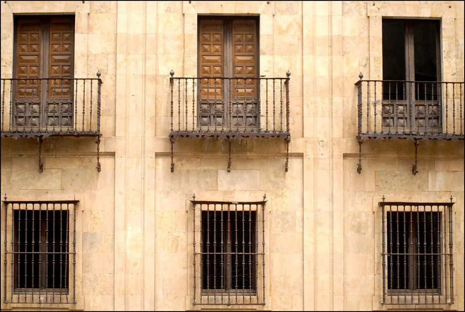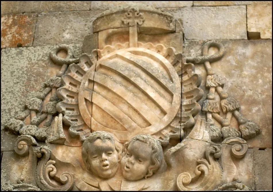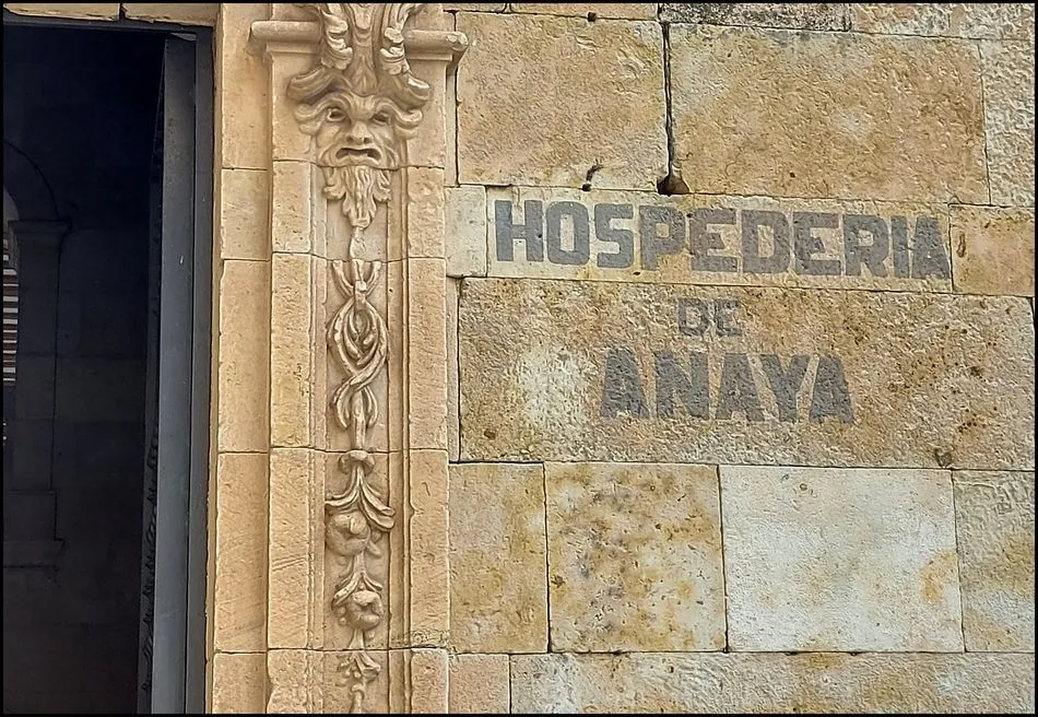 Se alza de puntillas, neoclásica en sus graníticas, infinitas columnas sobre la escalera, la mole señorial del Palacio de Anaya, el antiguo Colegio Mayor de San Bartolomé que se rehiciera tras el terremoto de Lisboa que tanto daño hizo a la ciudad del Tormes. Una ciudad de salvaje francesada que acabó con parte del patrimonio y que al menos, nos consuela con el espacio vacío, pleno de jardín y estudiante de letras, de la Plaza que lleva el mismo nombre que el Palacio. Diáfano mirador de la grandeza de la nave catedralicia donde las agujas de piedra se coronan de cigüeñas, el Palacio de Anaya es un monumento a la piedra sólida, a la historia de su páginas de muros que se adorna con la exquisita parroquia de San Esteban, delicada y rotunda y con la geometría modesta, de hierro de sus ventanas y piedra dorada, de la Hospedería que levantaran en 1715 Joaquín de Churriguera Y Panteón de Portón.