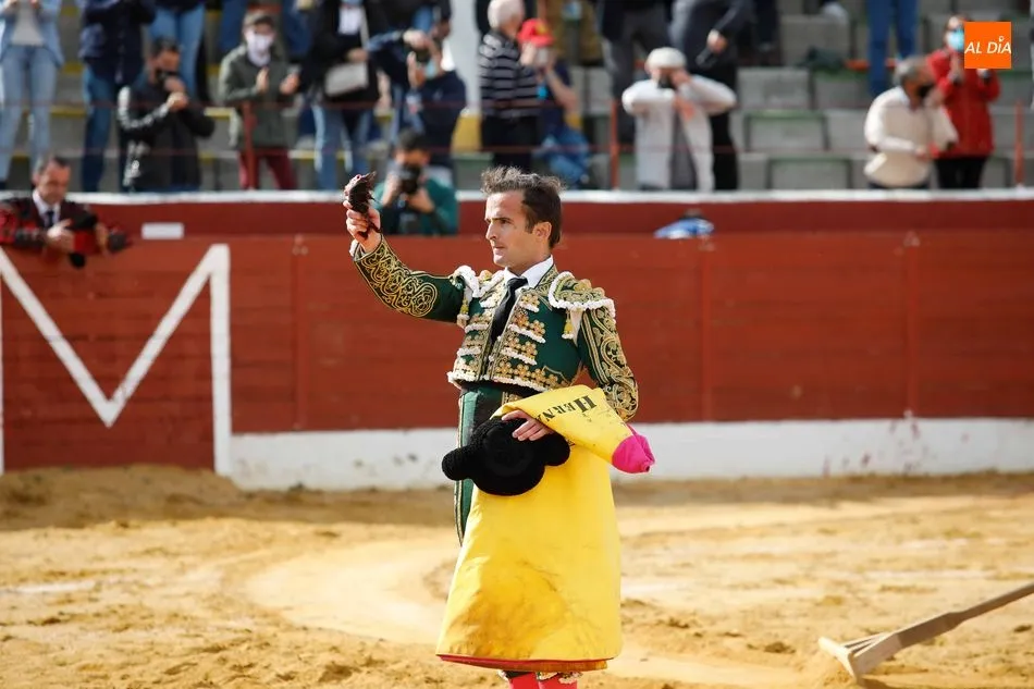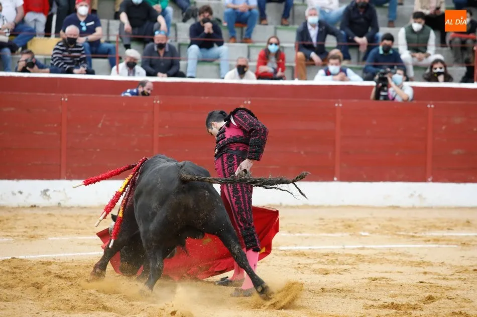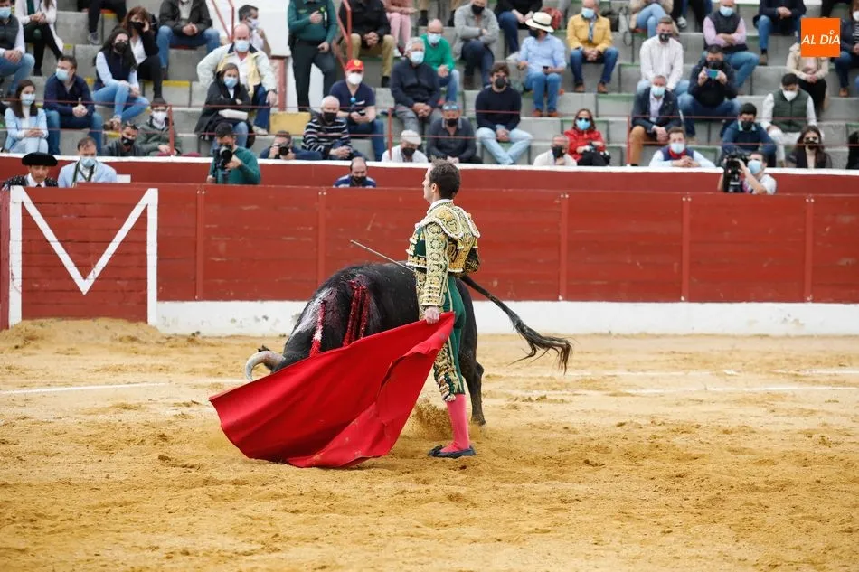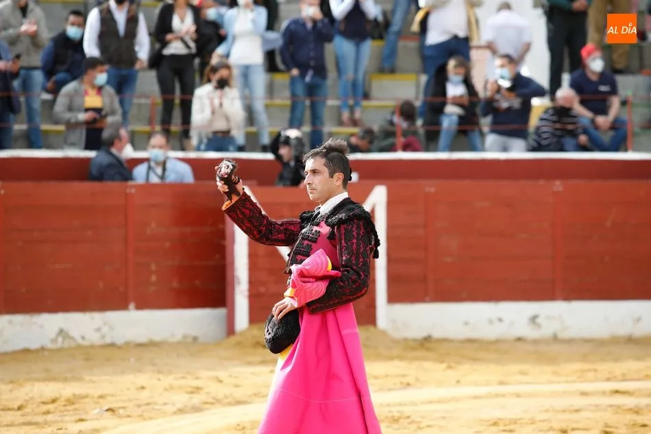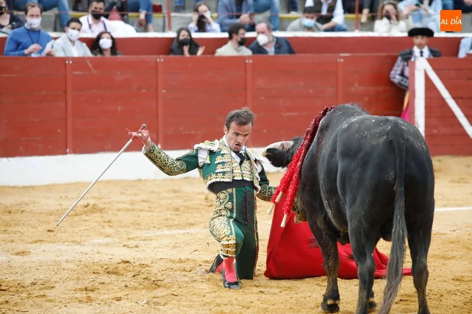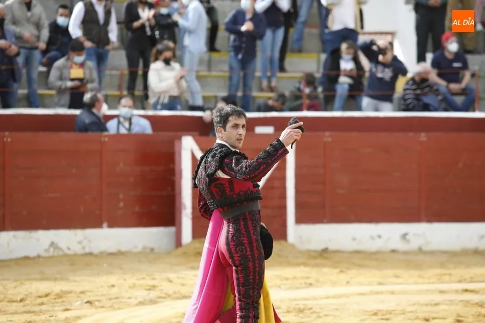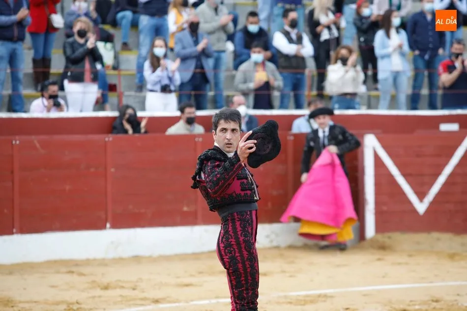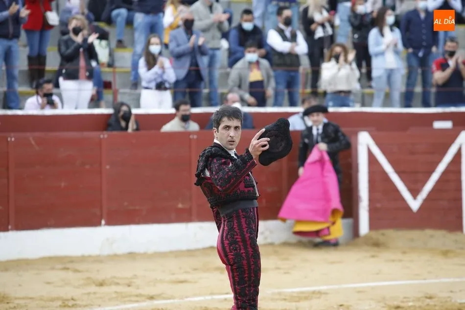 Ovación con saludos para Javier Castaño en el primero, en el que perdió los trofeos con los aceros.