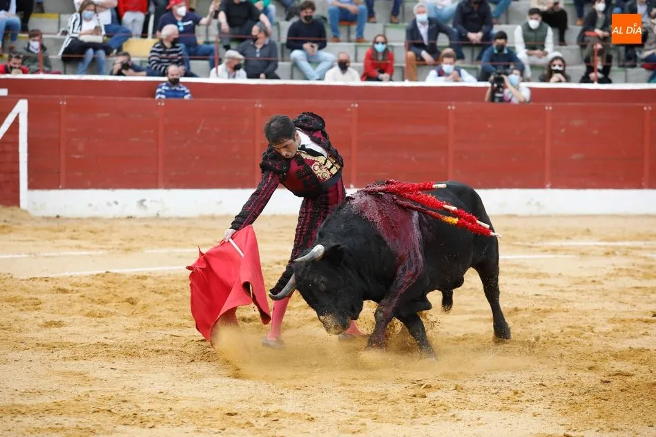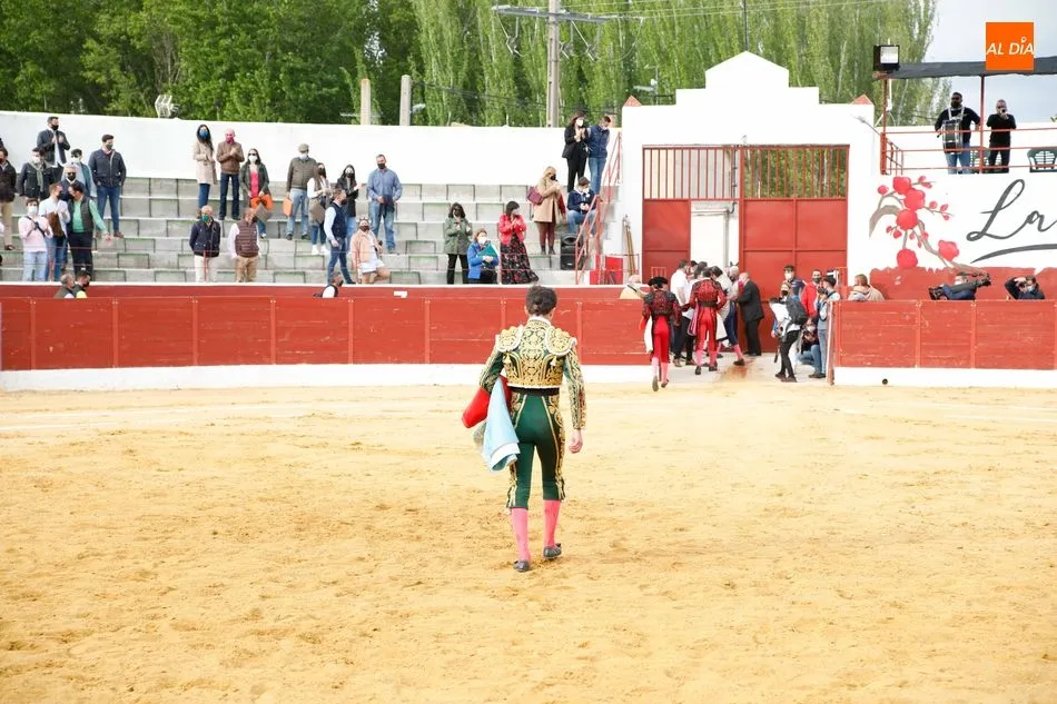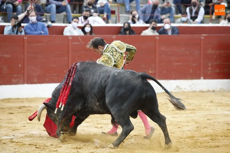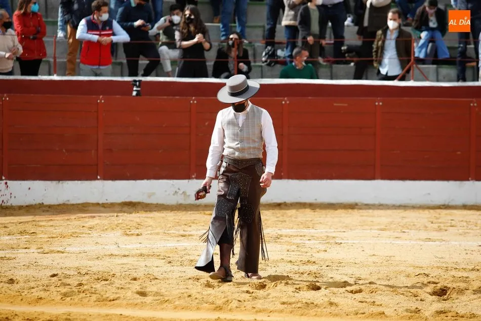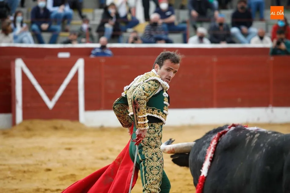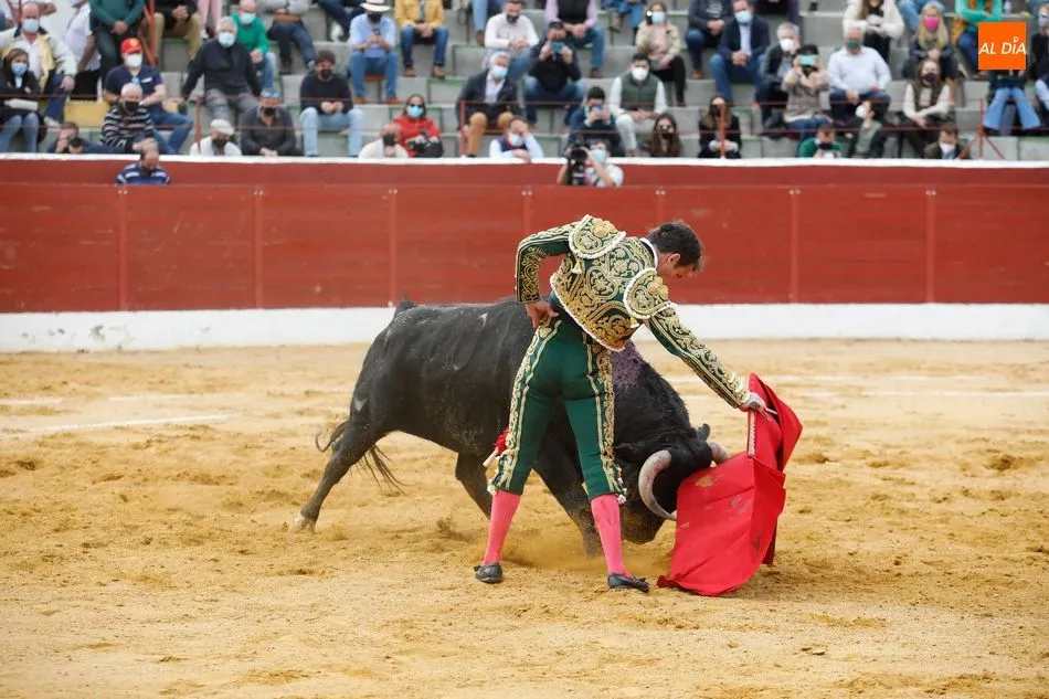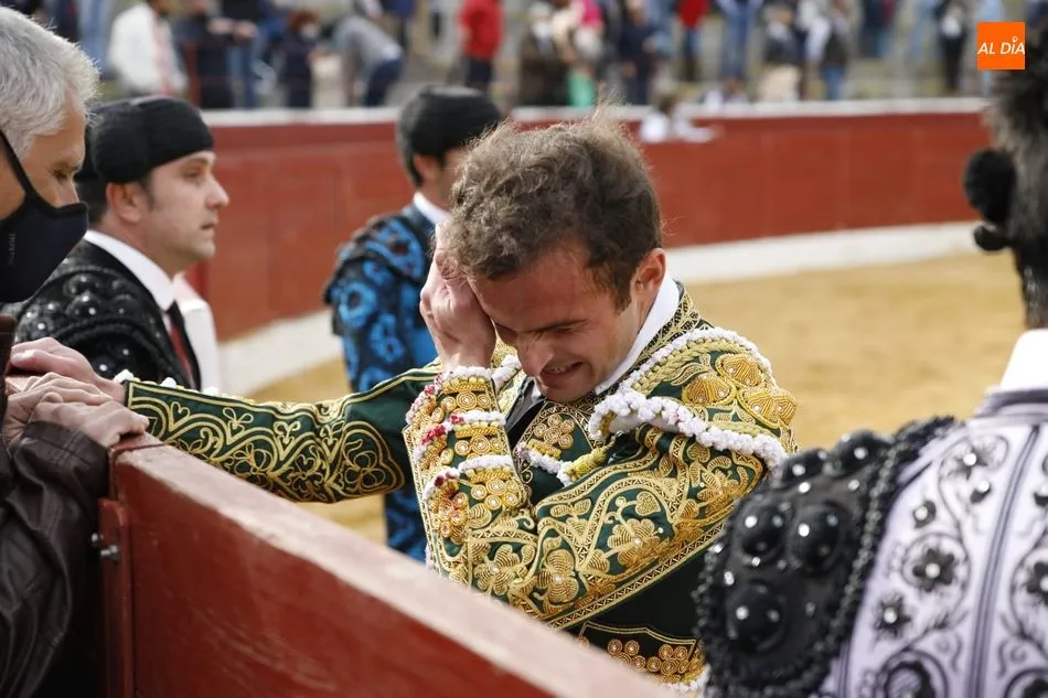 Ovación con saludos para Javier Castaño en el primero, en el que perdió los trofeos con los aceros.