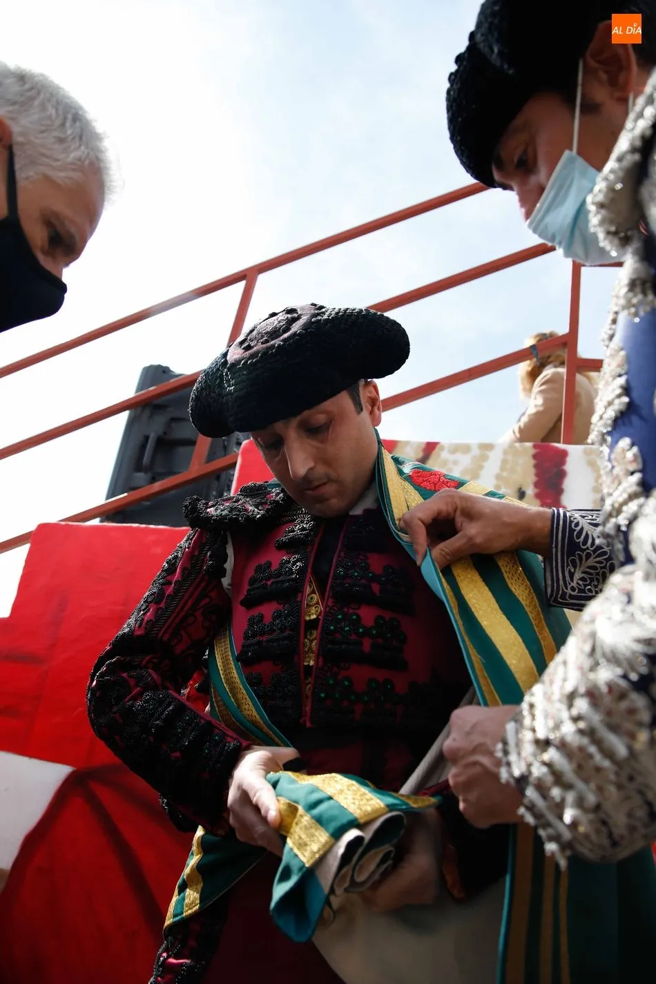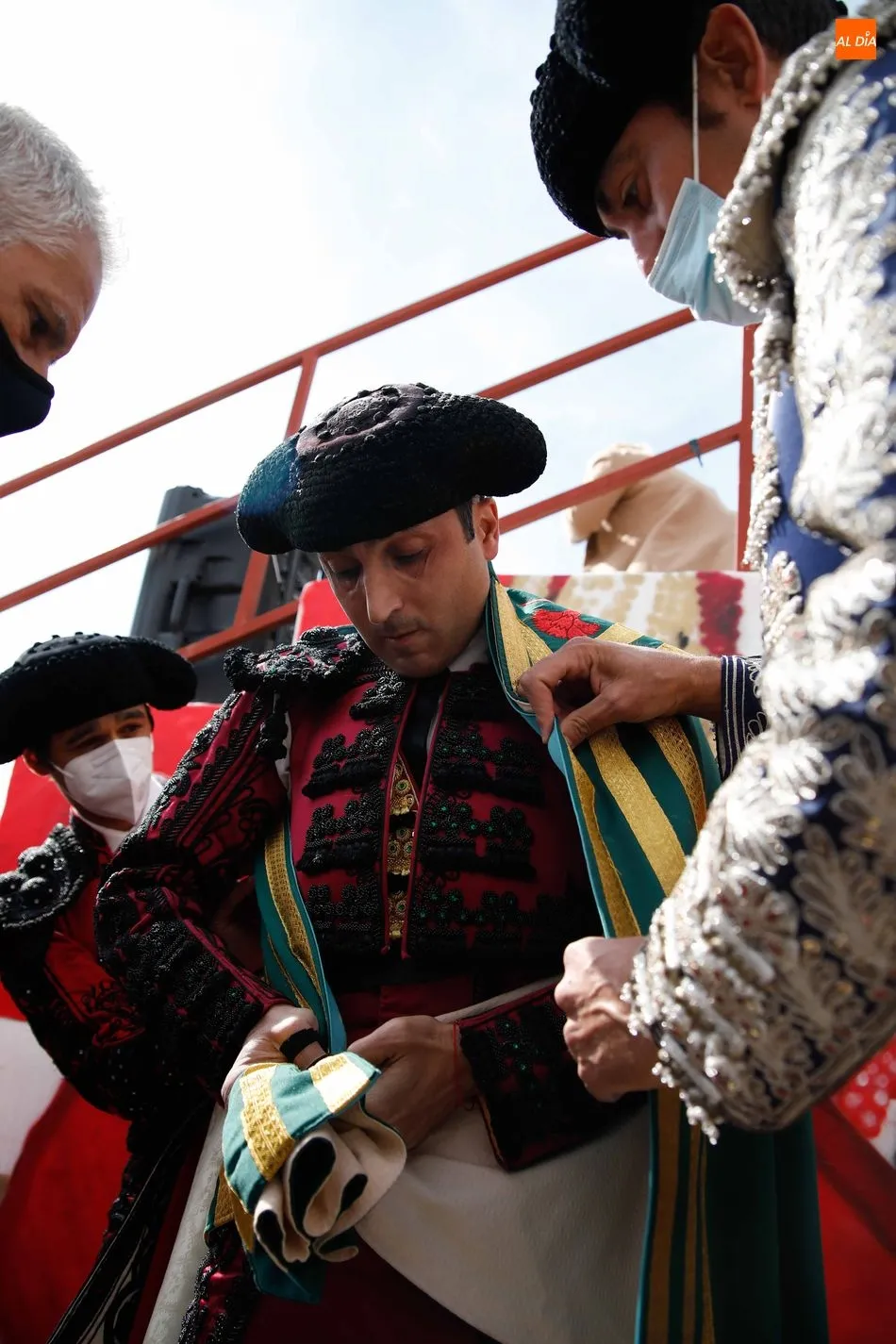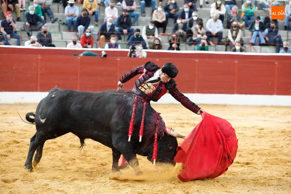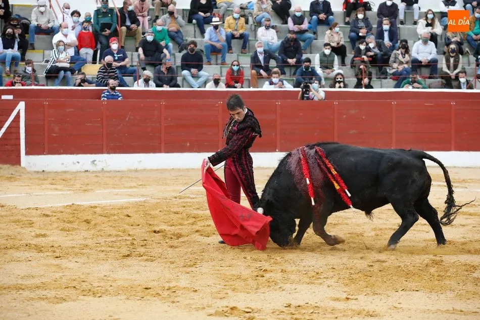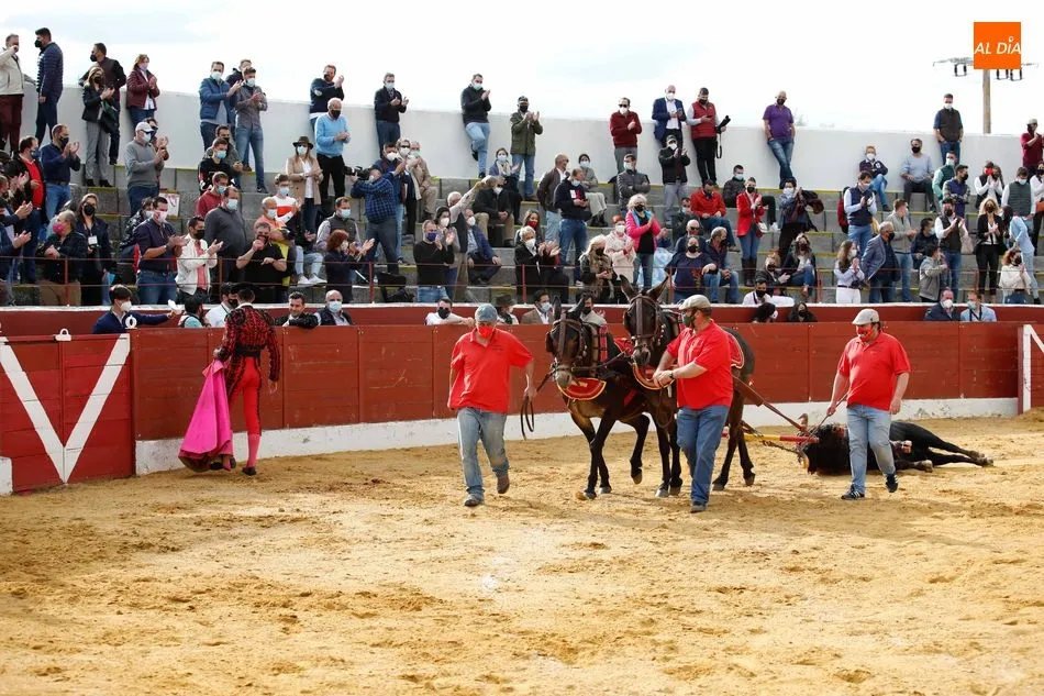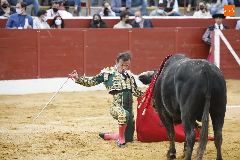 Ovación con saludos para Javier Castaño en el primero, en el que perdió los trofeos con los aceros.