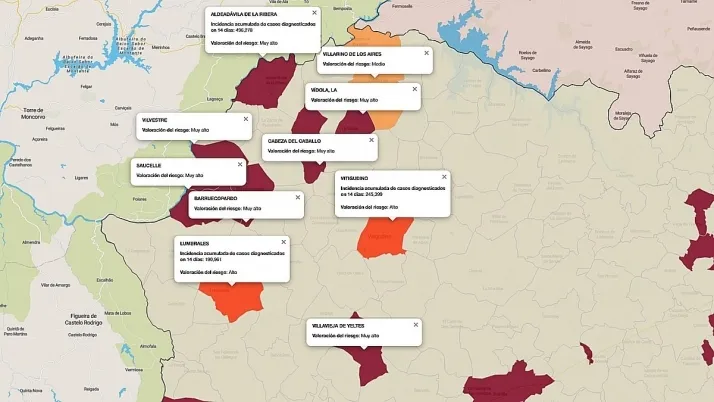 Además, sobre la valoración del índice de riesgo en municipios de menos de 1.000 habitantes, hay que precisar que con un solo positivo el resultado siempre es de Muy alto. Esto es debido a que en la fórmula para la obtención de estos valores se aplica sobre una población de 100.000 habitantes.