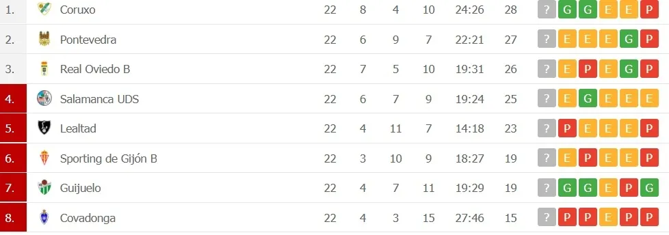 Mientras, en el de descenso, el bando del Helmántico, que es cuarto, está a un punto de quedarse en Segunda RFEF el próximo curso. Peor suerte tiene el cuadro del Municipal, que es séptimo, y tiene una desventaja de siete? pero llegará con mínimas opciones al final tras estar deshauciado hace poco.