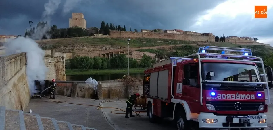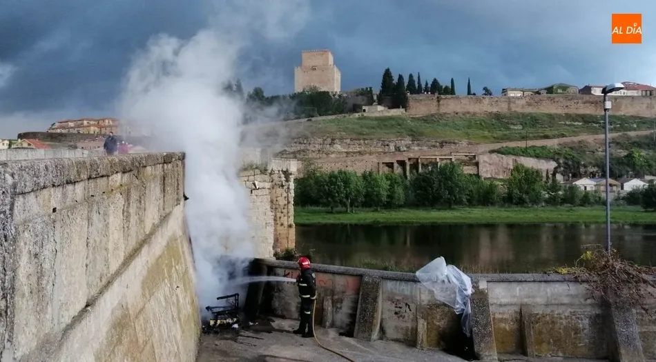 Una dotación de los Bomberos de Ciudad Rodrigo tuvo que desplazarse en el tramo final de la tarde del miércoles hasta el Arrabal del Puente para sofocar las llamas de un sillón que había echado arder junto al Puente Mayor, en el extremo correspondiente a la calle Muro. Se sospecha que este incendio (declarado sobre las 20.00 horas) fue intencionado, teniendo en cuenta varios precedentes, que hacen incluso que ese punto del Puente Mayor se haya ido tiñendo de negro. Se da la curiosidad de que la actuación de los Bomberos estuvo a punto de ?no ser necesaria?, ya que apenas unos minutos después descargó un fuerte chaparrón en Ciudad Rodrigo.