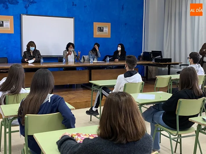 Tras el recorrido por las exposiciones, la actividad se centraba en un encuentro con alumnos, en el que la hija del escritor castellanoleones y presidenta de la Fundación Miguel Delibes, compartía una amena charla y daba respuesta a todas las dudas y preguntas que la formularon los jóvenes y los docentes.
