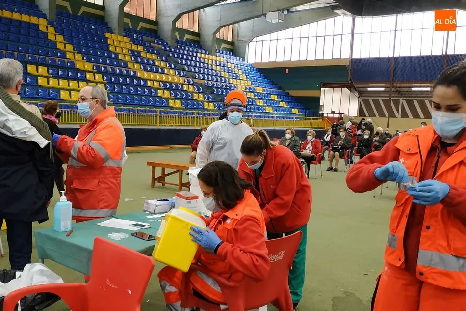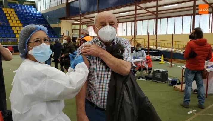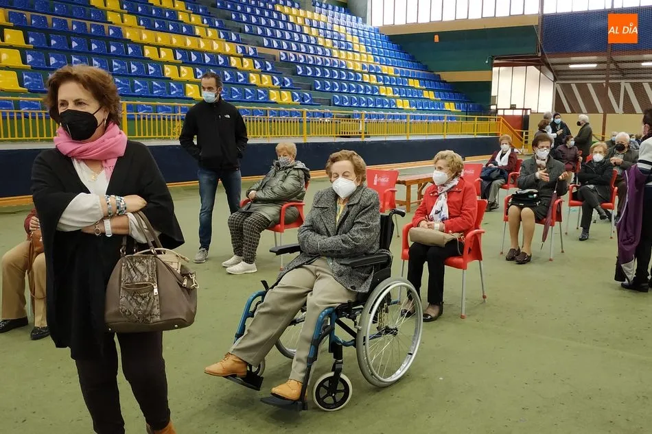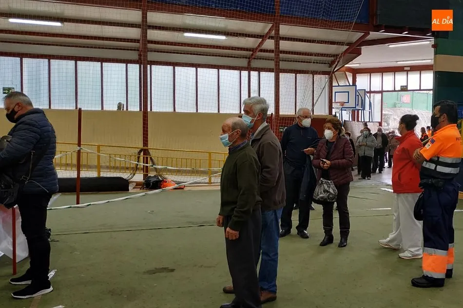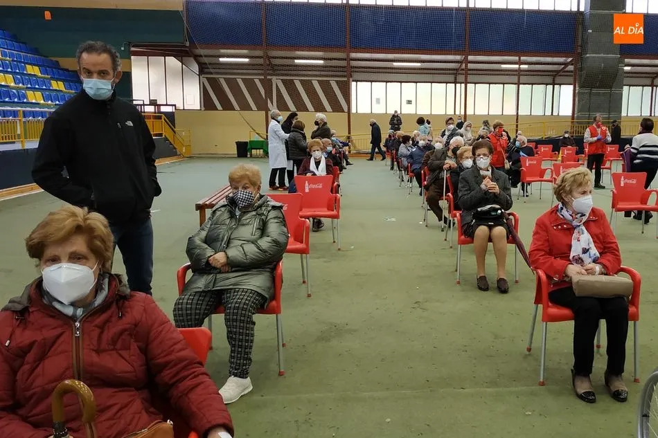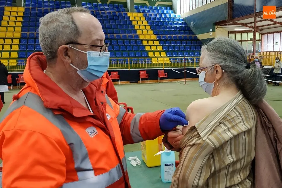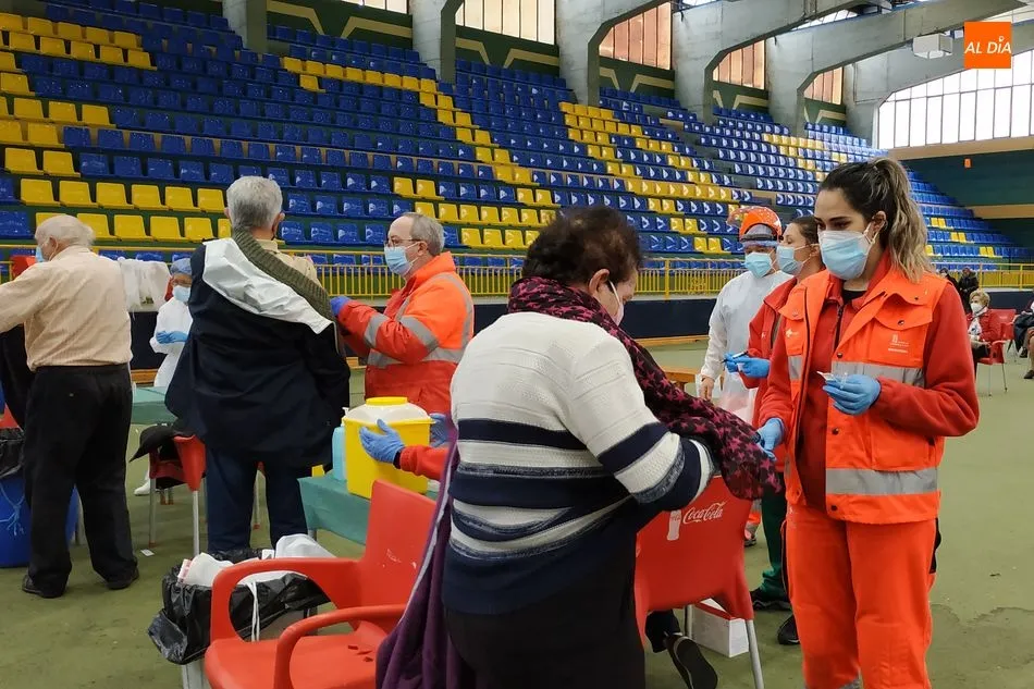 Algo más de mil personas mayores de 80 años han sido inoculadas hoy en Béjar con la segunda dosis de la vacuna de Pfizer, en una jornada en la que no ha habido aglomeraciones y las colas han avanzado con fluidez, debido a que se han respetado los horarios por parte de las personas que han acudido a vacunarse y a la impecable organización por parte del Centro de Salud y de los voluntarios de Protección Civil que incluso han previsto una cola en el interior del pabellón para evitar el mal tiempo reinante hoy en exteriores.