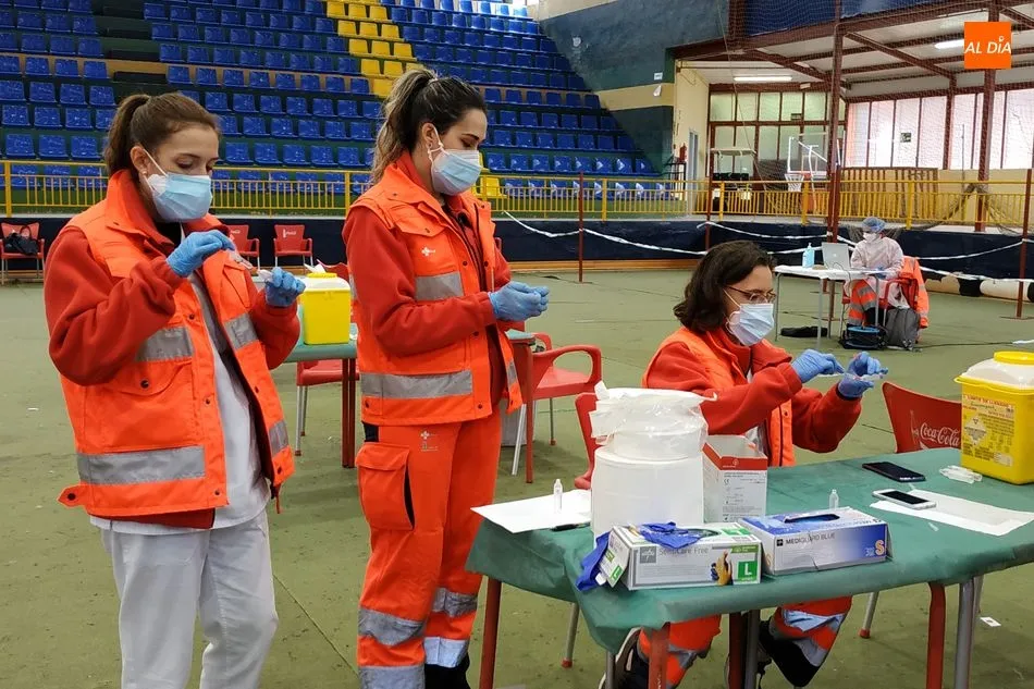 Ana Pavón, coordinadora de vacunación, ha informado que dentro del equipo han contado con la ayuda de cuatro enfermeras procedentes de la Universidad de Salamanca y de la Universidad Pontificia que están haciendo sus prácticas en el Centro de Salud de Béjar, para las que está siendo una experiencia poder participar en las vacunaciones masivas como parte de la formación que están recibiendo.
