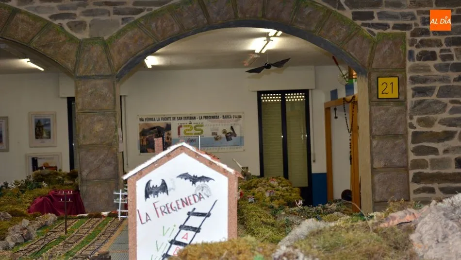 La sala del edificio municipal donde está expuesta la maqueta ha tomado el nombre de 'Tunel 21', -un "añadido" de la línea férrea que dicurre por 20 túneles-, tras la colocación de dos arcos que simulan la entrada y salida de un tunel, obra realizada por Santi, Santiago Fernández, el alguacil y artesano local de La Fregeneda.