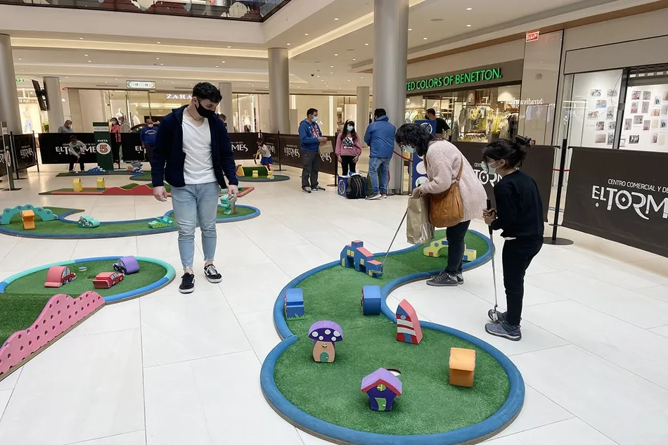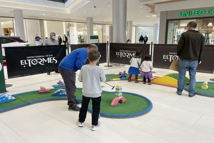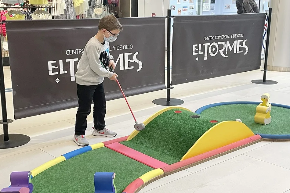 Este circuito, en el que se puede participar presentando un ticket de compra de cualquiera de los establecimientos del Centro Comercial realizada durante estos días (30 de abril y 1 y 2 de mayo), cuenta con seis áreas tematizadas: de montañas y jardín, de signos y dados, icebergs y barcos, árboles y puente, carretera y agujeros, y agujeros y desniveles.