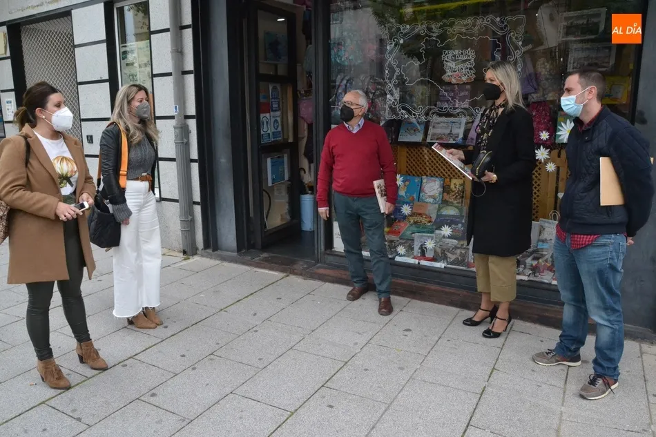 La ruta de premiación comenzó en la Librería Garzón, que se ha hecho con el 3º premio (recompensado con 100?), por una decoración ?que aún permanecía en la tarde del viernes- a base de siluetas con motivos florales, primaverales, y enanitos portando libros a sus espaldas, figurando de fondo diferentes obras literarias.