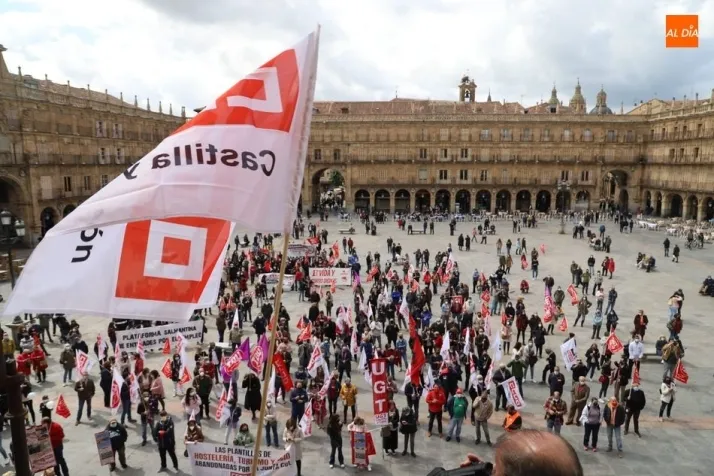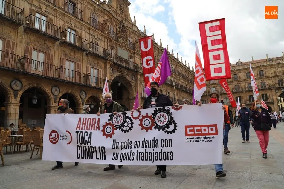 Ambos sindicatos han celebrado la cita obrera con una manifestación en la Plaza Mayor de Salamanca