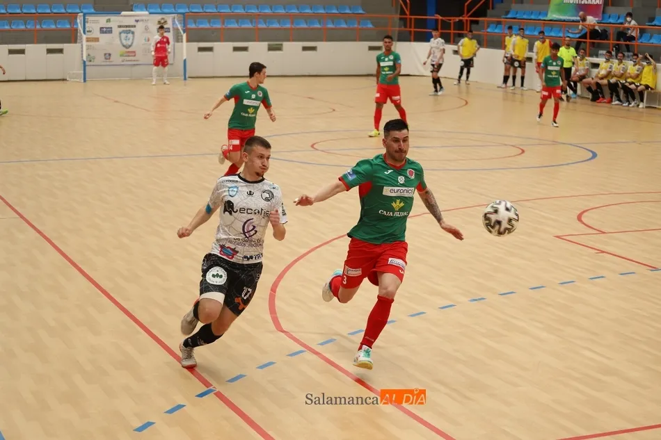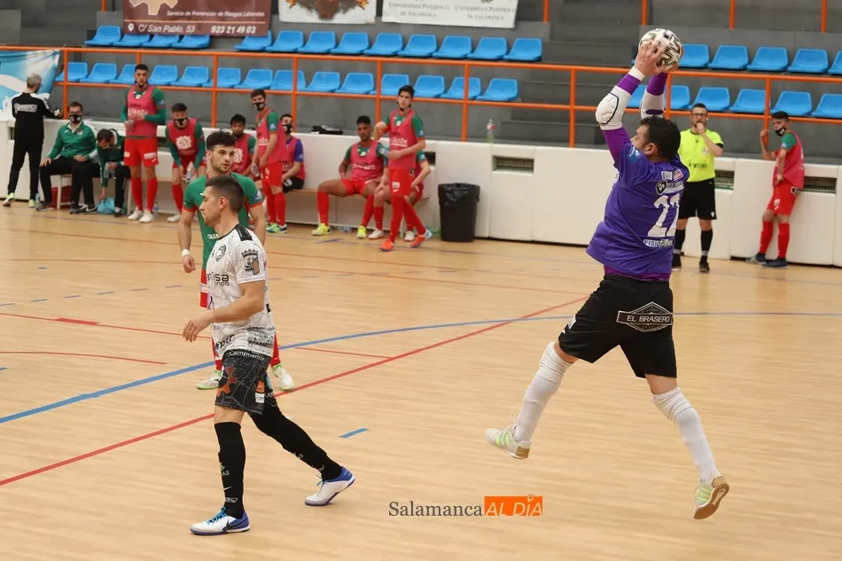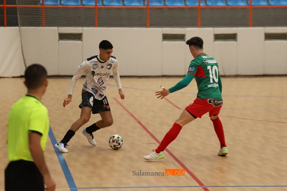 El toma y daca fue constante desde el inicio del partido. Los ataques chocaban contra las defensas y una ocasión de un equipo la respondía el otro. El primer intento de los salmantinos acabó dentro de la portería, pero el lanzamiento desde el saque de banda de Iñaki no tocó en nadie y el tanto no subió al marcador.