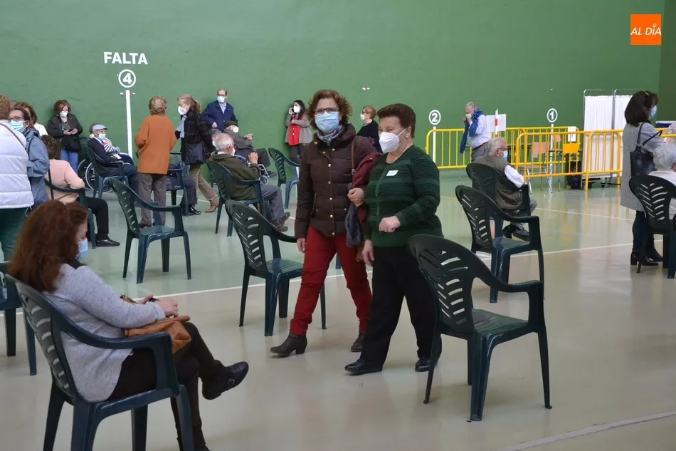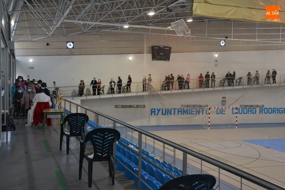 El frontón del Pabellón Eladio Jiménez de Ciudad Rodrigo reabrió sus puertas en la mañana del lunes para acoger una nueva jornada de vacunación masiva contra el coronavirus, de la que son protagonistas en este caso los mayores de 80 a 89 años de toda la Zona Básica de Ciudad Rodrigo (formada por La Atalaya, El Bodón, Carpio de Azaba, Castillejo de Martín Viejo, Ciudad Rodrigo, La Encina, Monsagro, Pastores, Saelices el Chico, Sancti-Spíritus, Serradilla del Arroyo, Serradilla del Llano, Tenebrón y Zamarra).
