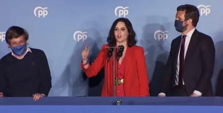 Ayuso arrasa en Madrid, alcanzando los 63 escaños con más del 52% de los votos escrutados, mientras el PSOE se desploma y Cs que se queda fuera de la Asamblea de Madrid