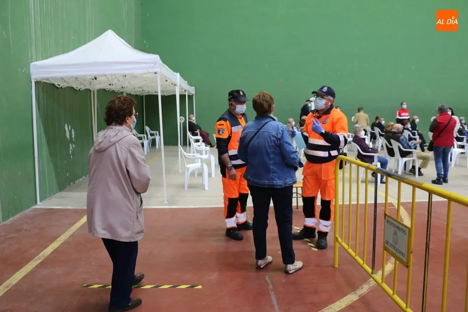Esto, unido también al buen trabajo realizado por los voluntarios de Protección Civil de Vitigudino, evitó que en las horas posteriores no se formaran aglomeraciones, ni tan siquiera pequeñas colas, pues a medida que las personas llegaban al frontón de Vitigudino entraban directamente, sin esperas, en las líneas de vacunación para ser revacunados.
