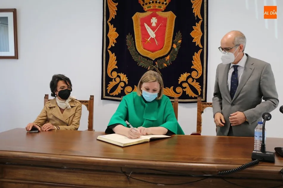 Por su parte, Luisa de Paz invitó a la consejera a estampar su firma en el libro de honor del Ayuntamiento, al mismo tiempo que agradeció su visita.