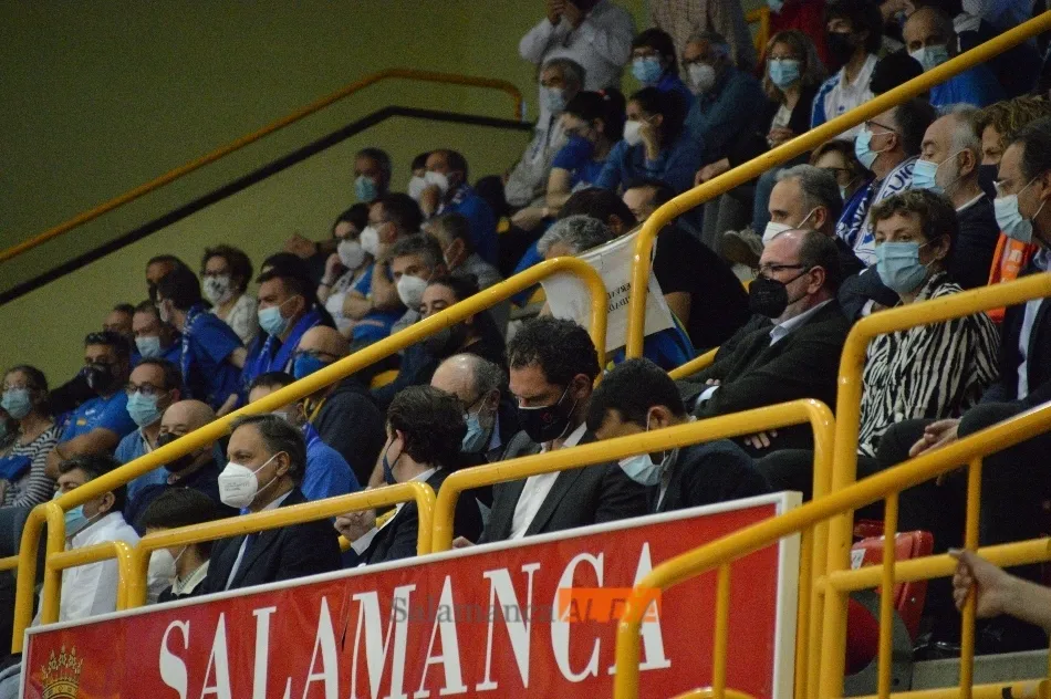 Además, en el palco se dejaron ver Jorge Garbajosa, presidente de la Federación, Mañueco, presidente de la Junta, o el alcalde Carbayo, entre otros.