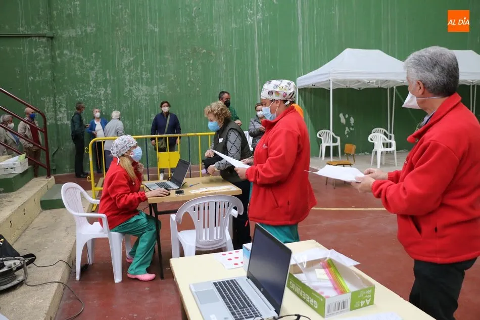 Entre los vacunados también estaban las 30 personas que no llegaron a recibir la vacuna el pasado martes por falta de dosis, pues el equipo sanitario no recibió en Salamanca las dosis necesarias de vacuna de acuerdo al número de personas vacunadas el 13 de abril.