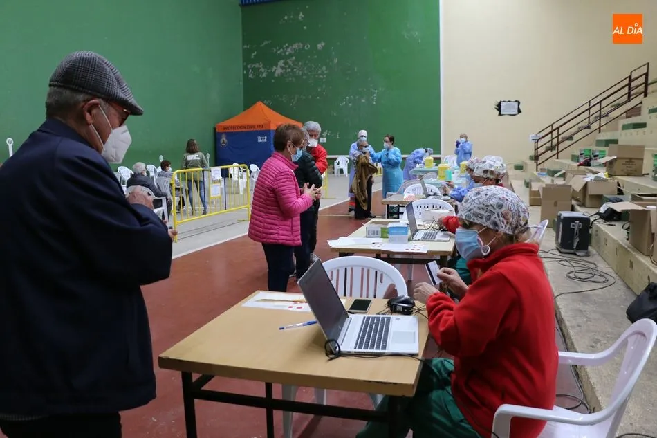 A las más de 400 personas que en la mañana de este jueves obtenían la segunda dosis de la vacuna Pfizer, esta tarde se suman otras 400 personas que recibirán la primera dosis, en una nueva jornada con doble sesión de vacunación en el frontón de pelota de Vitigudino.