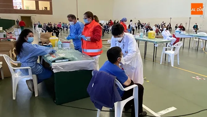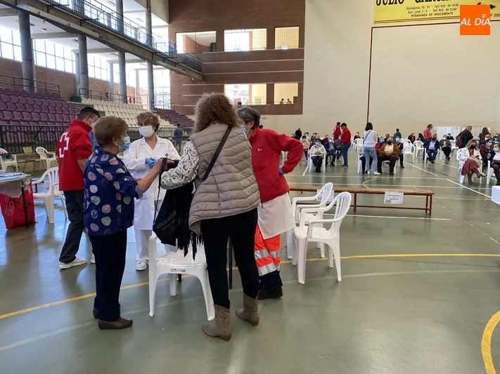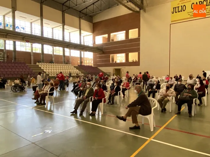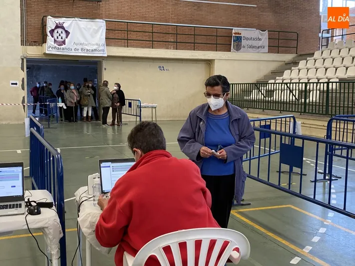 Más de 300 personas de entre 77 y 79 años de edad y de toda la zona básica de salud de Peñaranda han completado este viernes su vacuna frente al coronavirus en una nueva jornada celebrada en el pabellón municipal Miguel Ángel Jiménez Barcala.