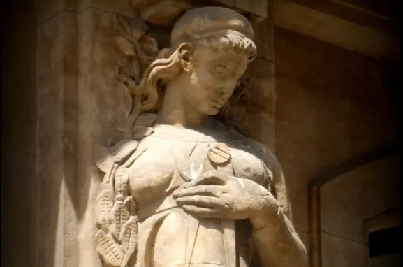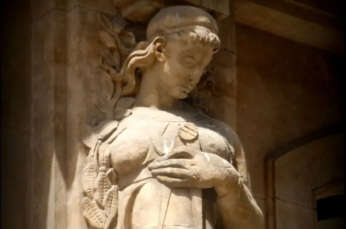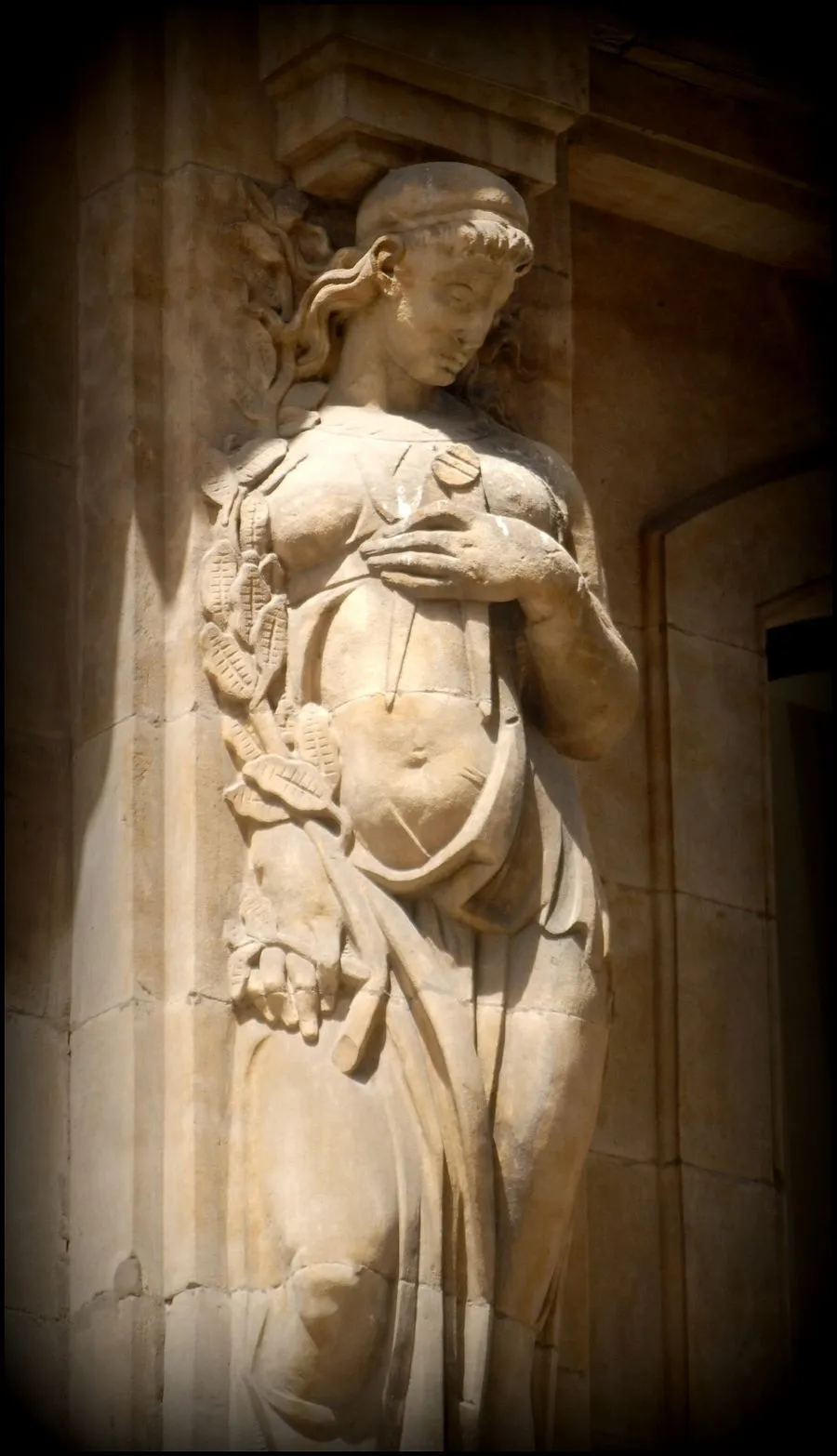 ¿Dónde han ido las figuras femeninas de trazado griego, la que sujeta una Victoria de Samotracia en la mano derecha y la que sostiene un desnudo de factura clásica? Sus grandes proporciones, sus rostros depurados, sus vestiduras geométricas han desaparecido de la fachada de un edificio restaurado.