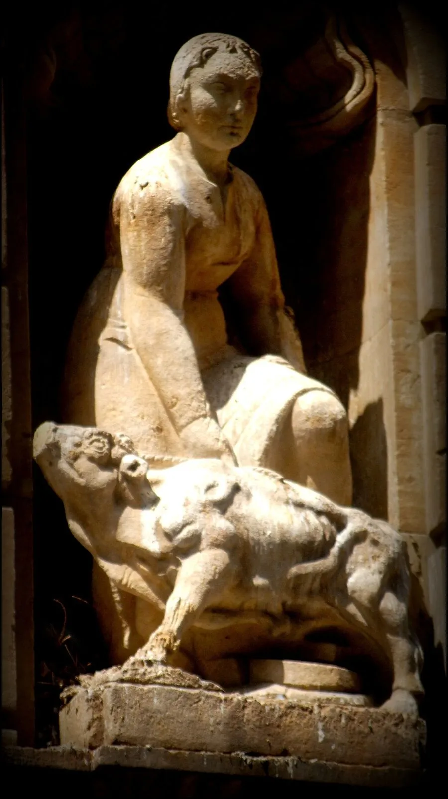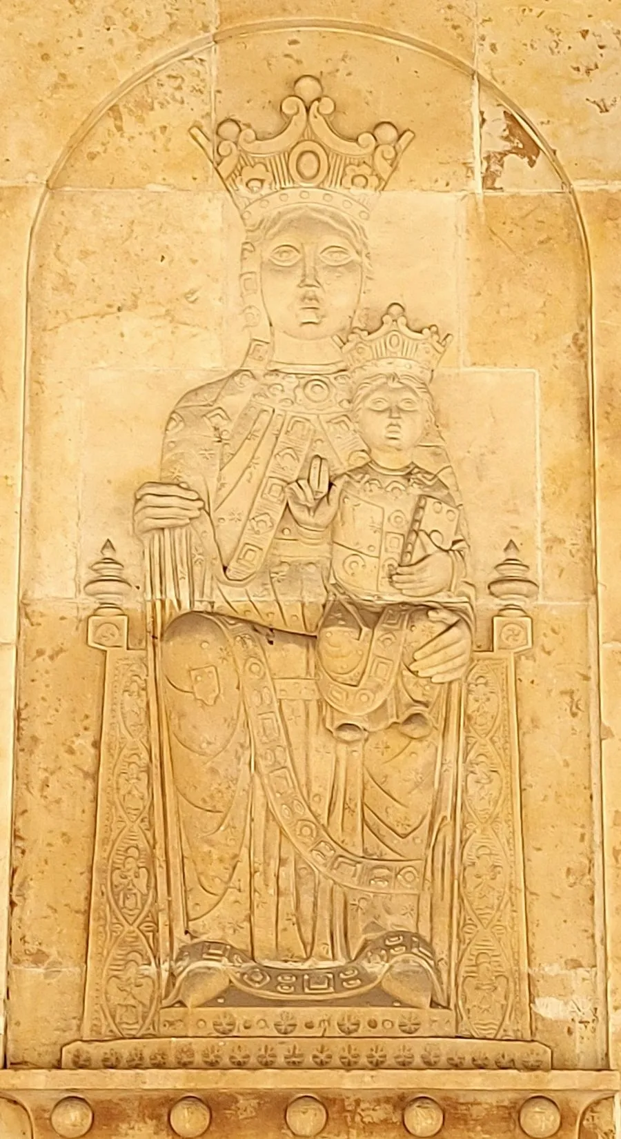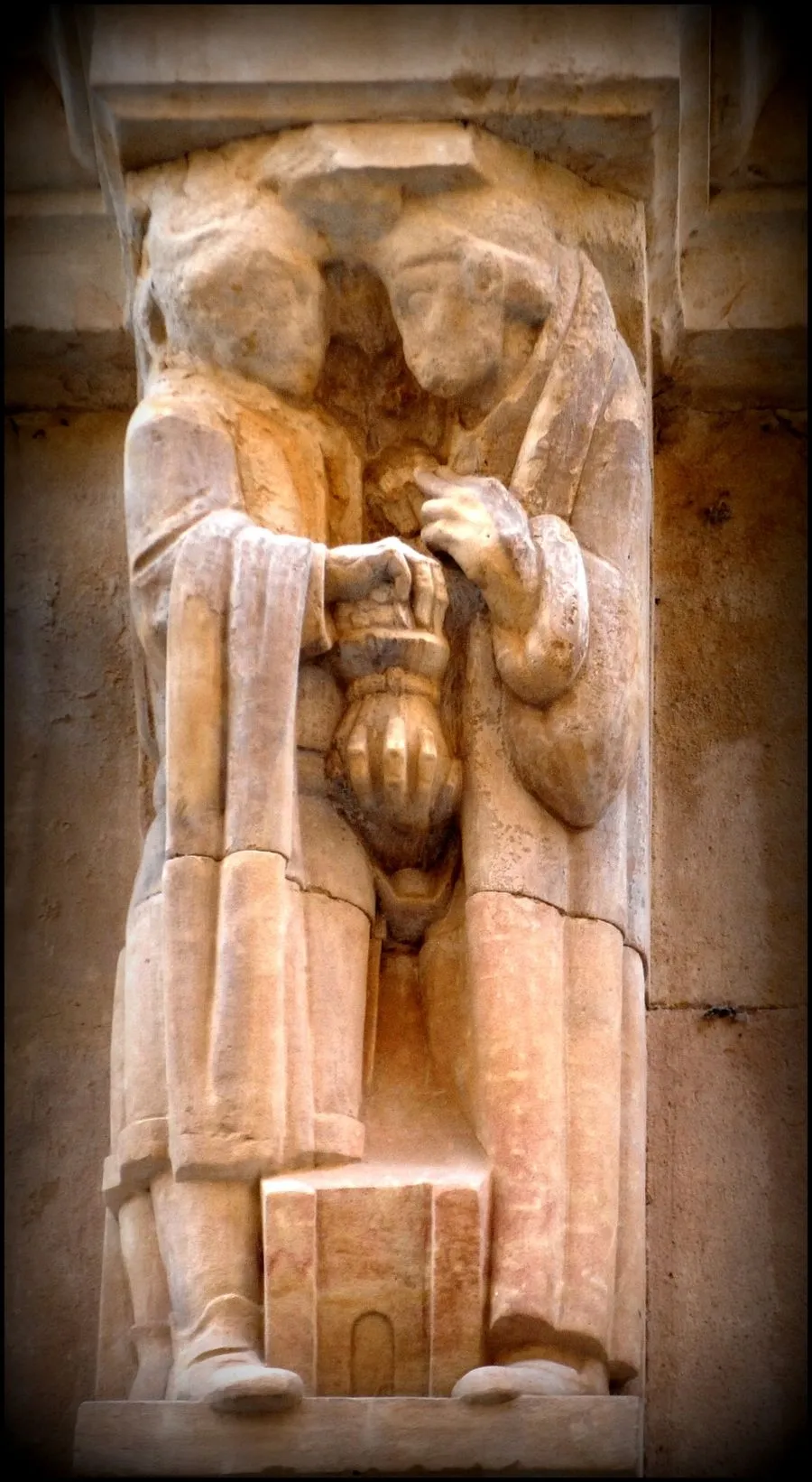 Suyo es, por ejemplo, y pese a algunas interpretaciones, el Sagrado Corazón que domina los alrededores de Macotera, realizado con mármol de Macael; suya la hermosa Santa Teresa caminante que vemos en el pantano del mismo nombre; o el bajorrelieve, casi un bordado, que muestra a la Virgen de la Vega entre los juzgados de la Gran Vía y la antigua oficina de Turismo, bizantina y sorprendente, atenta a nuestro paso que no repara en su cercana grandeza. Villar nos acompaña, como todos los escultores de la calle, en el devenir de los días y, sin embargo ¿Reparamos en sus mujeres esforzadas en sostener el edificio que el sol ilumina para la cámara de Amador? ¿Reparamos en las delicadas alegorías de Núñez Solé y de Villar con las que podemos jugar a descubrir ?la vendimia, la ganadería, el manantial, el textil- los dones de la provincia salmantina? ¿Nos fijamos en las ménsulas de la calle Toro, encargadas por Pedro Jaén, que nos evocan el mercado de ganado y la construcción?