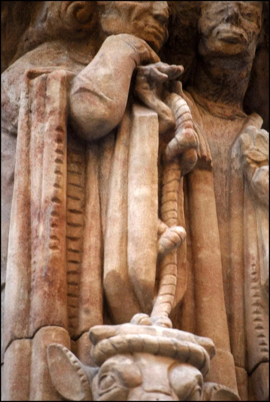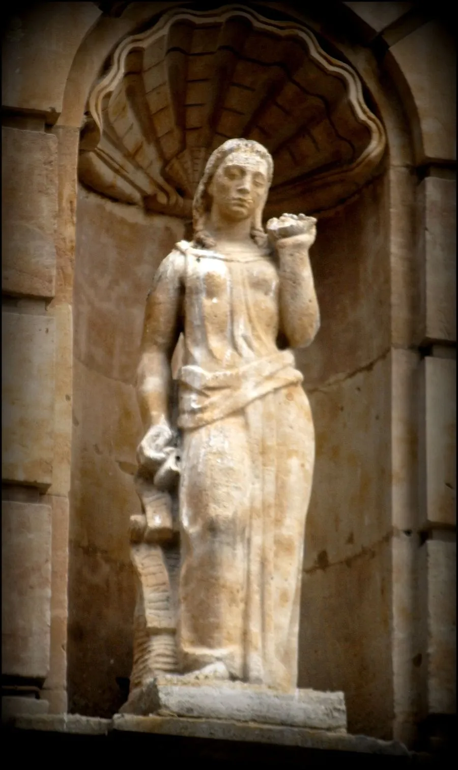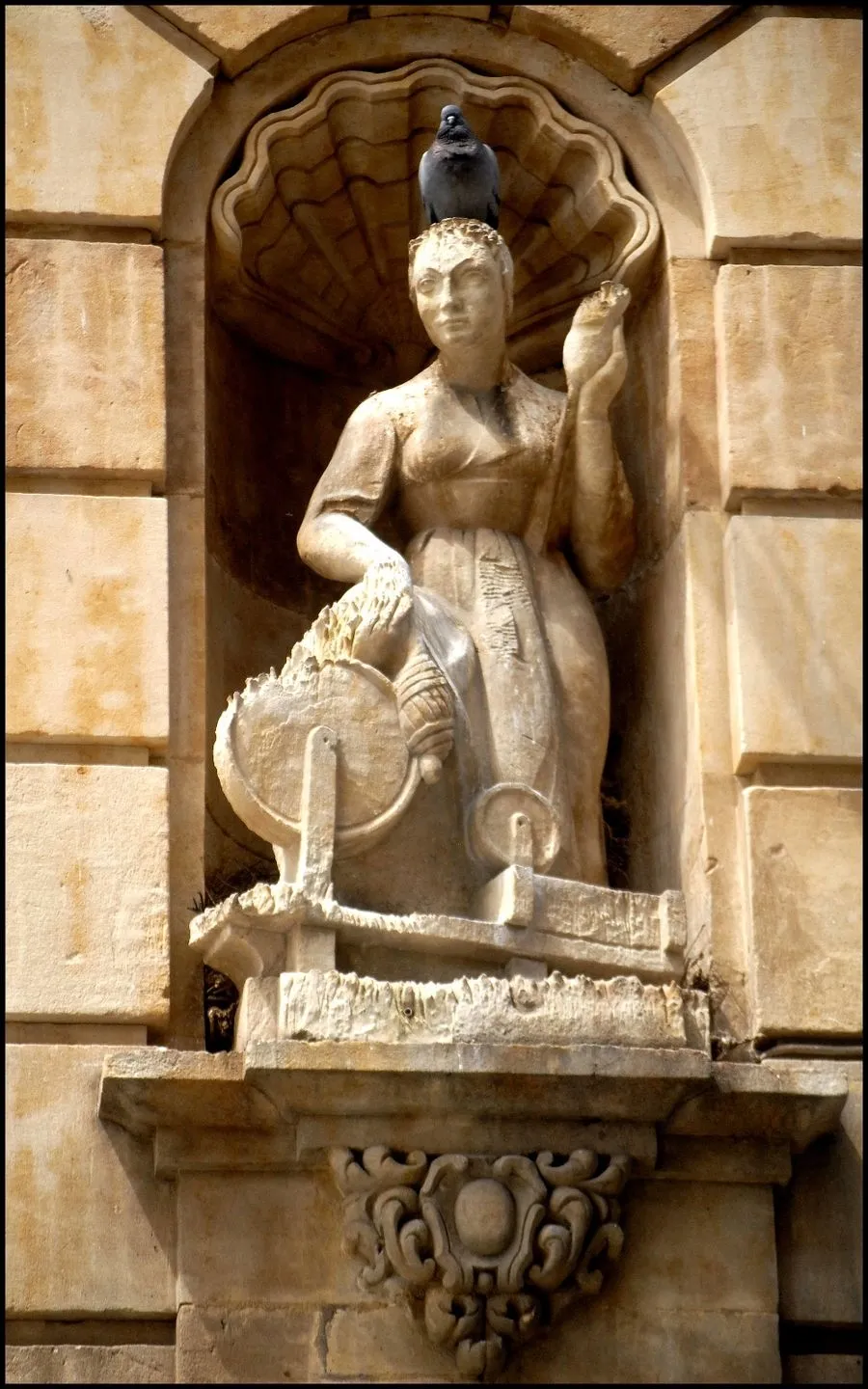 Suyo es, por ejemplo, y pese a algunas interpretaciones, el Sagrado Corazón que domina los alrededores de Macotera, realizado con mármol de Macael; suya la hermosa Santa Teresa caminante que vemos en el pantano del mismo nombre; o el bajorrelieve, casi un bordado, que muestra a la Virgen de la Vega entre los juzgados de la Gran Vía y la antigua oficina de Turismo, bizantina y sorprendente, atenta a nuestro paso que no repara en su cercana grandeza. Villar nos acompaña, como todos los escultores de la calle, en el devenir de los días y, sin embargo ¿Reparamos en sus mujeres esforzadas en sostener el edificio que el sol ilumina para la cámara de Amador? ¿Reparamos en las delicadas alegorías de Núñez Solé y de Villar con las que podemos jugar a descubrir ?la vendimia, la ganadería, el manantial, el textil- los dones de la provincia salmantina? ¿Nos fijamos en las ménsulas de la calle Toro, encargadas por Pedro Jaén, que nos evocan el mercado de ganado y la construcción?