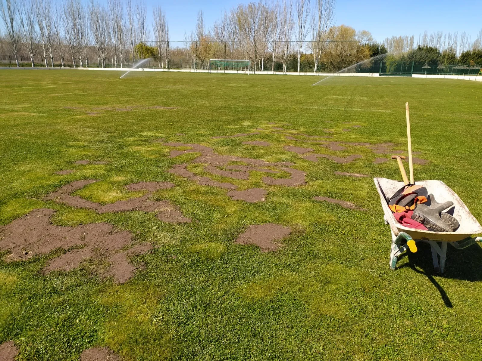 José García, concejal de Deportes, ha indicado que ya el año pasado, debido al Estado de Alarma, se inició un proceso de renovación del terreno de juego que se ha ido manteniendo a lo largo de este año. Aprovechando el buen tiempo y tras los estragos de los temporales de invierno, durante estas semanas se está reparando y saneando las zonas más dañadas con la resiembra de unos 75 kilos de semilla para que el campo reúna las mejores condiciones.
