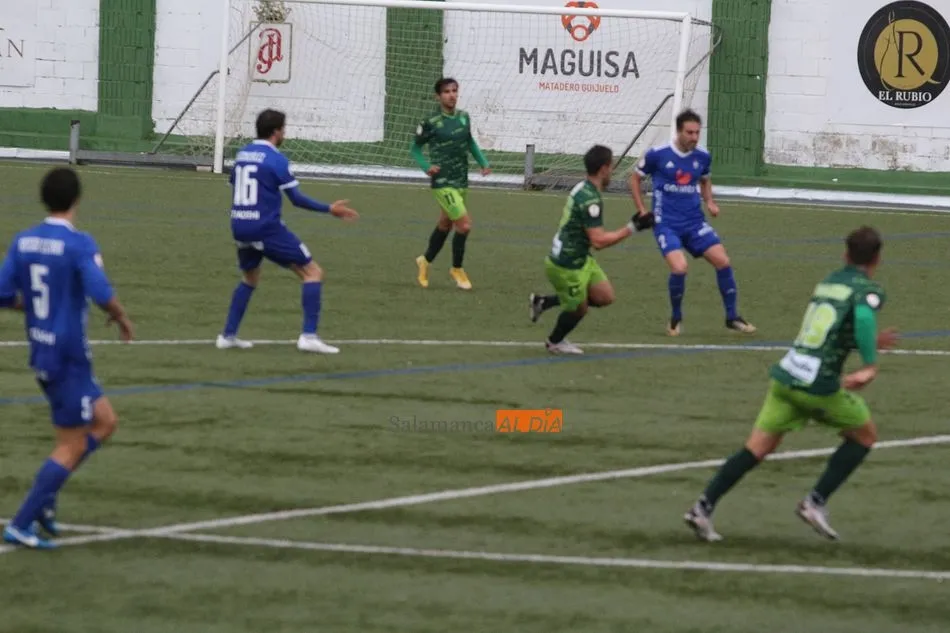 Nada más empezar el partido se abrió el marcador con un gol de Lolo Plá, al robar este un balón al portero rival y marcar el 1-0. El Guijuelo comenzaba así con comodidad y ganas de olvidar el resto de la temporada brindando una victoria a su afición, que pese a la lluvia y el resultado de la temporada, bajó a apoyar al equipo al Municipal Luis Ramos.