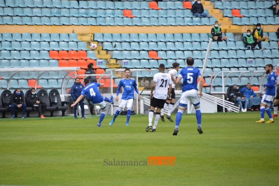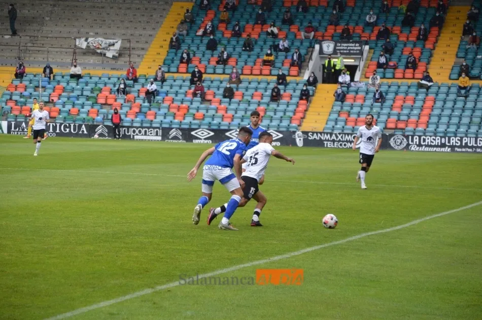Empezó fuerte el conjunto salmantino con un tiro de semichilena de Juancho López y un mano a mano en el que el Puma Chávez fusiló a Kane Sarr, pero el esférico se estrelló en su cuerpo al salir con todo. Los locales dominaron y los visitantes trataron de salir al contragolpe, aunque sin mucho éxito en ninguno de los dos casos. Entre tanto, el delantero mexicano volvió a errar una nueva oportunidad.