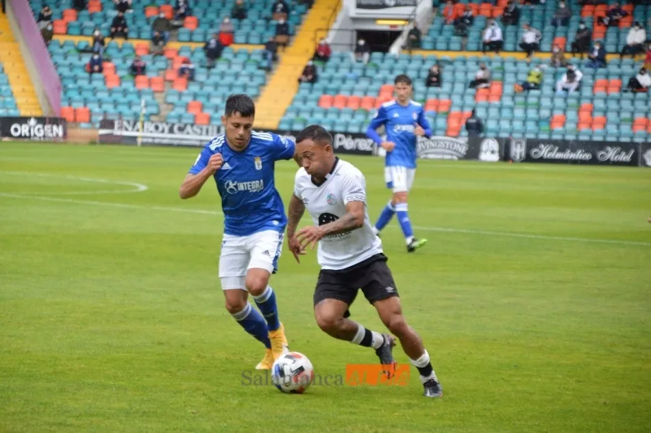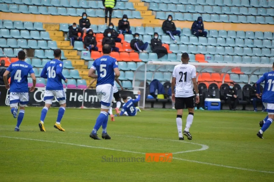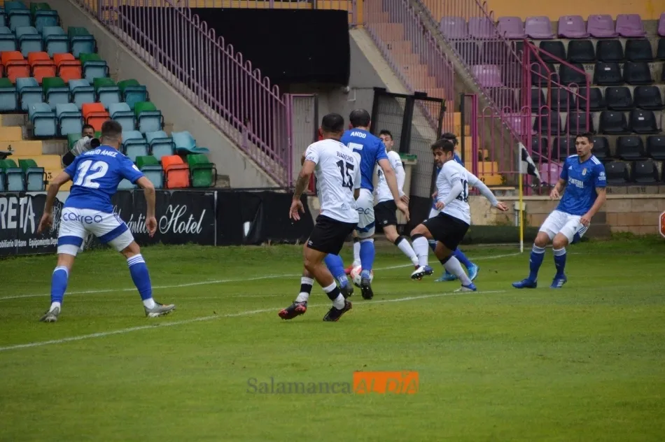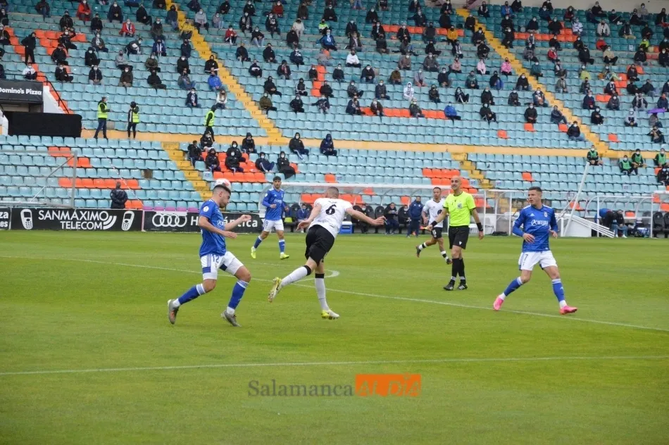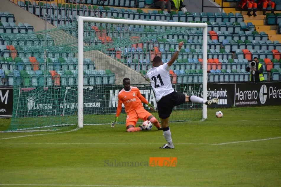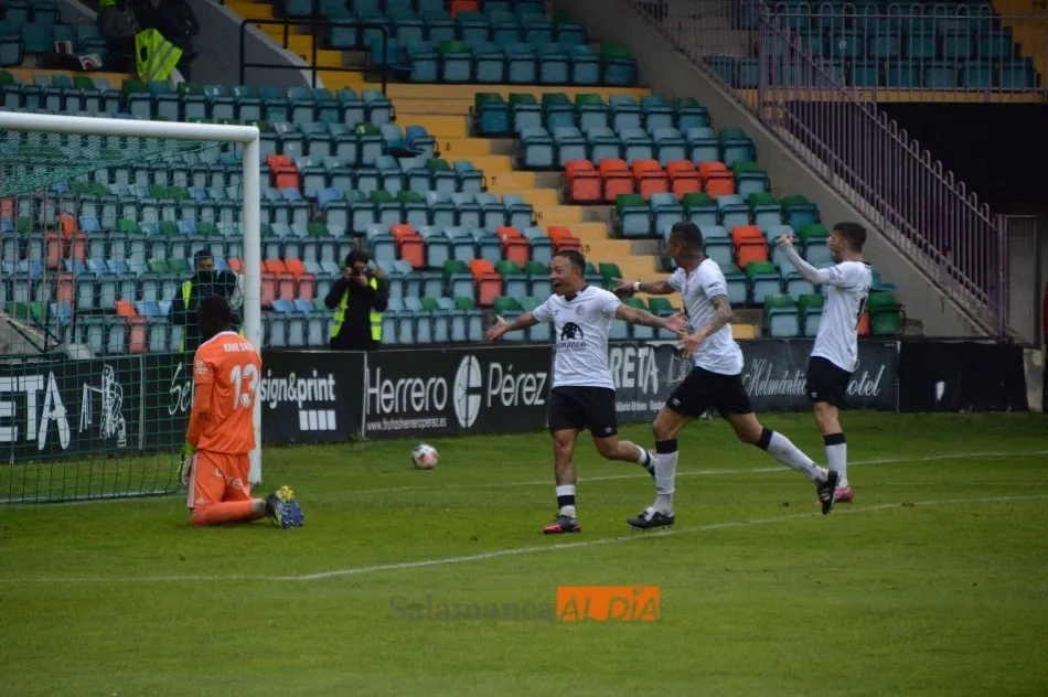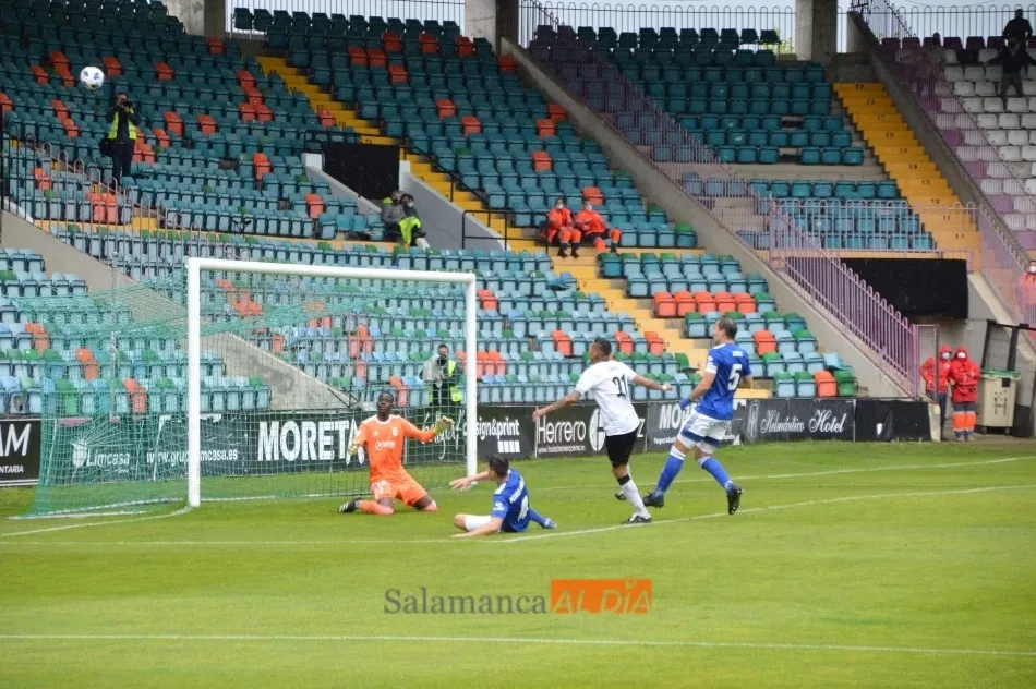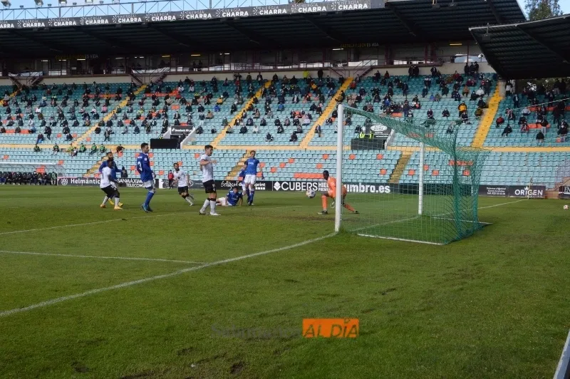El que corrió mejor suerte fue Álex Camacho, que realizó una internada desde la derecha, golpeó con la izquierda y su disparo tocó en un defensor antes de colarse en la meta asturiana. Alegría a raudales en las gradas que casi empaña poco después el capitán Armenteros. La fiesta no quedó ahí, Juancho López firmó su primera diana con la camiseta del Salamanca UDS desatando el delirio y los cánticos ?Lolo, quédate, Lolo, quédate?. 2-0 al descanso.