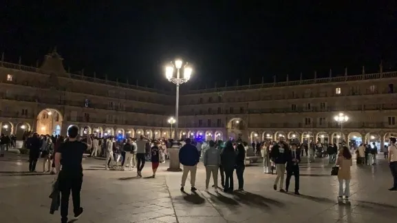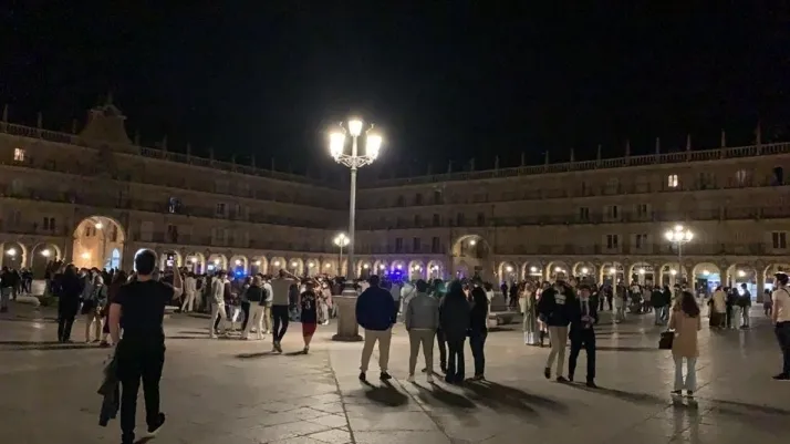 La Plaza Mayor de Salamanca se llena de público al dejar de aplicarse el toque de queda