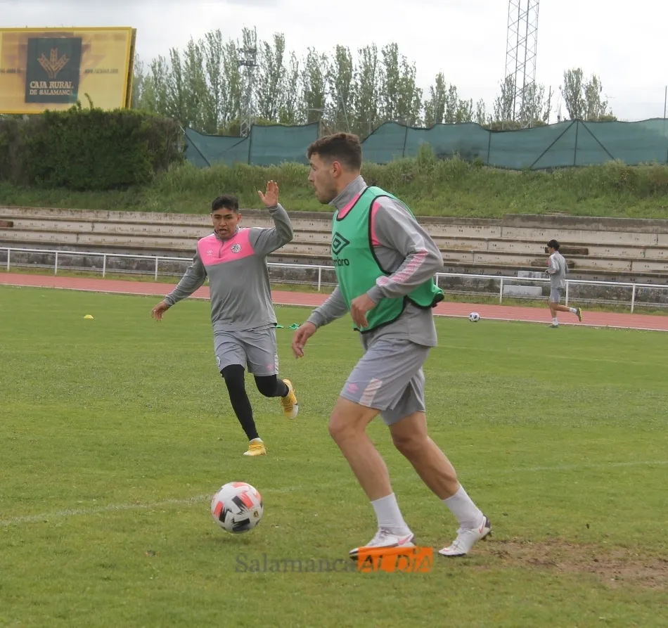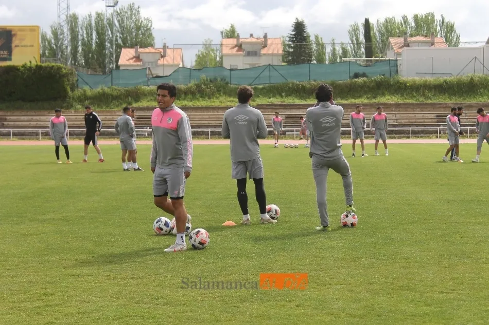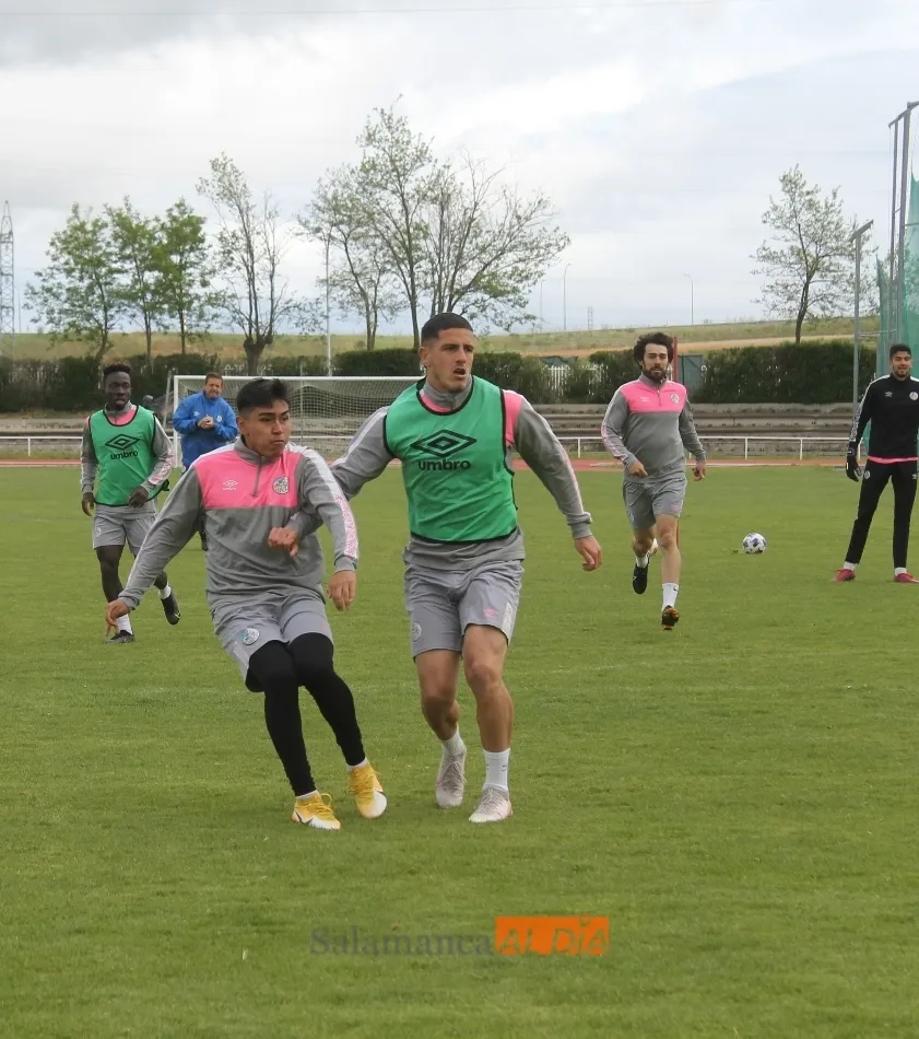 La alegría y el buen ambiente imperaron en el entrenamiento del Salamanca UDS tras la victoria del pasado domingo. Como es habitual, los titulares se retiraron pronto de Las Pistas y los suplentes realizaron un partidillo en una suave sesión para recargar las pilas después de vencer al Oviedo Vetusta (4-0).