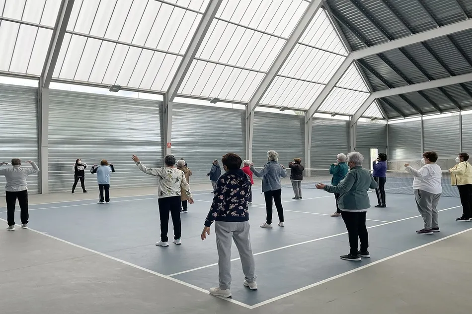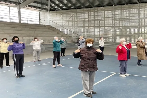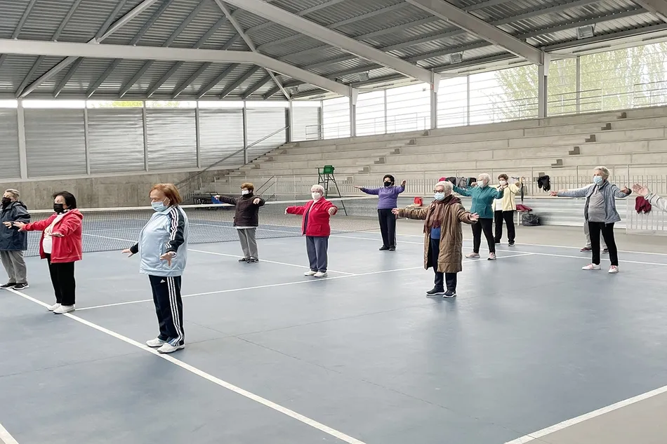 La gimnasia para mayores se celebrará al aire libre y hasta el día 17 de junio todos los martes y jueves, de 12,30 a 13,30 horas. Las clases se impartirán en el recinto ferial del municipio, aunque hoy, debido al mal tiempo, se ha impartido en la pista de tenis cubierta.