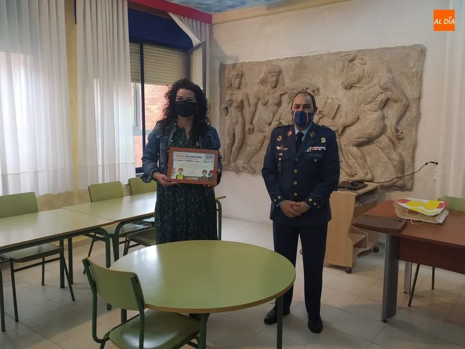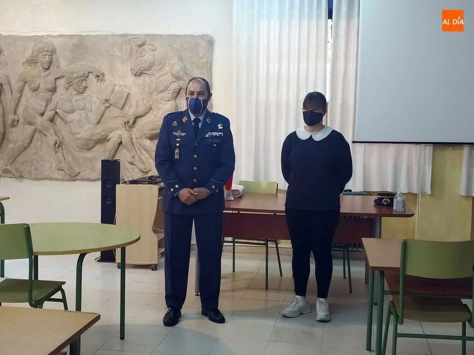 Al acto asistieron, además de la galardonada y el subdelegado de Defensa, la directora del centro, Raquel Rodríguez; la alcaldesa de Vitigudino, Luisa de Paz Palacios; la concejala delegada de Educación, María José Vicente, y el nuevo teniente de la Guardia Civil destinado al cuartel de Vitigudino tras la marcha del capitán Jesús Ríos.