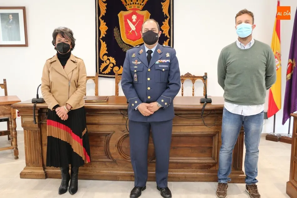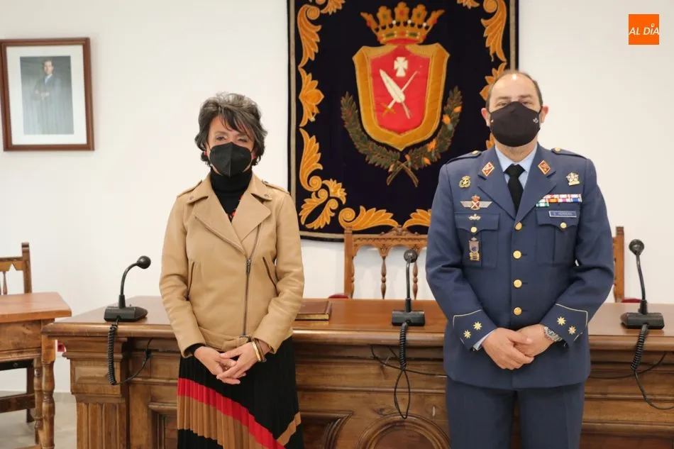 El coronel Emilio García entregó a Luna Aguilar Ullán este reconocimiento y ofreció a la alcaldesa de Vitigudino iniciar una relación institucional que beneficie a la sociedad civil y a las Fuerzas Armadas