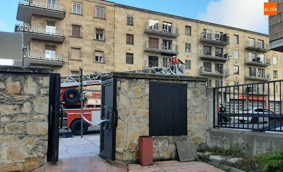 Afortunadamente, según los testigos, no ha habido heridos, aunque los bomberos municipales han acordonado la zona para evitar daños y poder comprobar la causa del desprendimiento y el estado de la parte alta de este edificio, que se encuentra entra la calle Jardines y la Facultad de Educación de la Universidad de Salamanca.