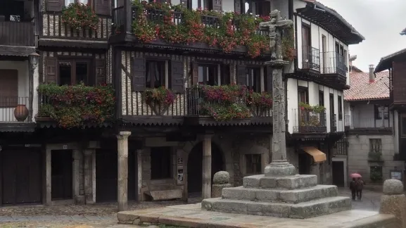 Ahora la cruz, como siempre ha hecho, protege este espacio, desde un hieratismo muy antiguo. La lluvia y el granito son hermanos, de ahí la protección del paraguas al fondo de la calle.