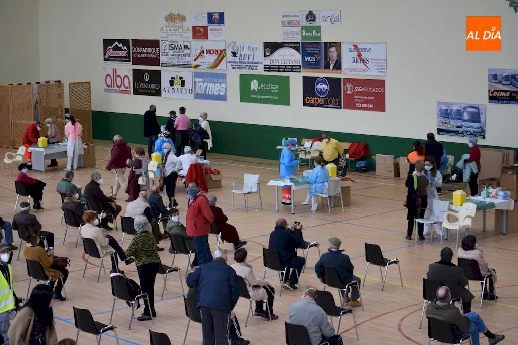 1.230 personas de entre 70 y 79 años de edad recibieron este miércoles la segunda dosis de la vacuna contra el coronavirus en el pabellón municipal de Alba de Tormes. Dicho grupo de personas había recibido de manera previa, concretamente el 21 de abril, la primera dosis de la vacuna en el mismo enclave.