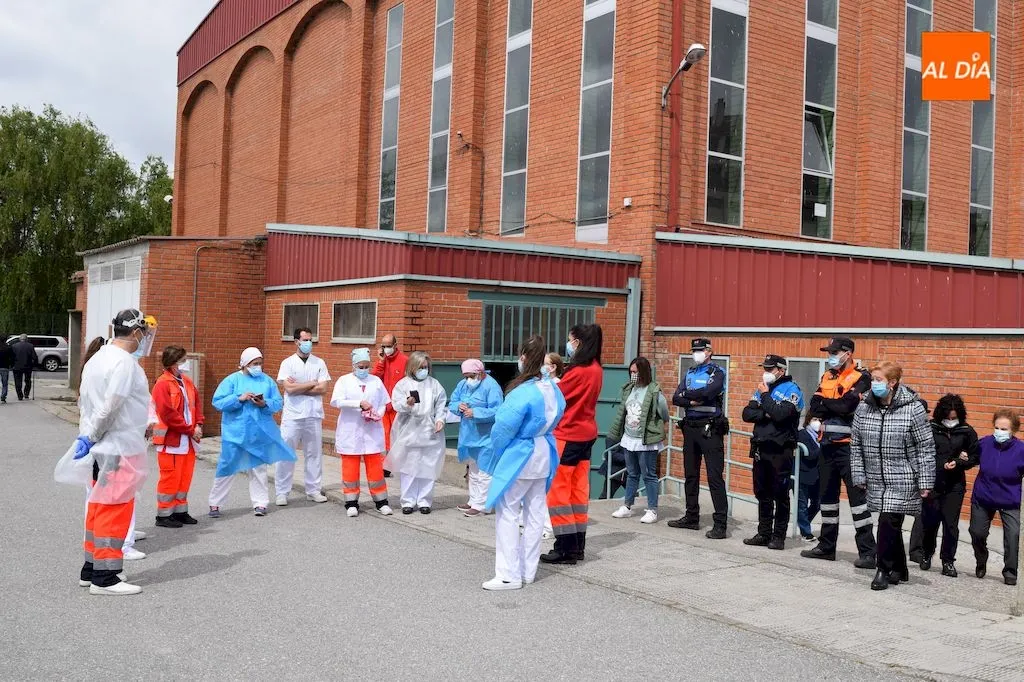 Coincidiendo hoy miércoles 12 de mayo con la celebración del Día Internacional de la Enfermería, los sanitarios encargados de llevar a cabo la vacunación masiva en Alba de Tormes guardaron un minuto de silencio en memoria de sus compañeros fallecidos.