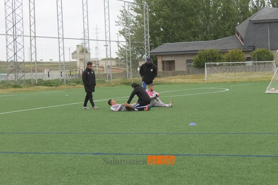 El Salamanca UDS preparó la final de Covadonga sin Casado y Sepúlveda -no salió a trotar ni tocar el balón- en este jueves lluvioso sobre el césped del Tori. Por su parte, Juancho López y Sergio Molina se retiraron antes del entrenamiento por los índices de fatiga, aunque su presencia en el Álvarez Rabanal el próximo domingo no corre peligro.